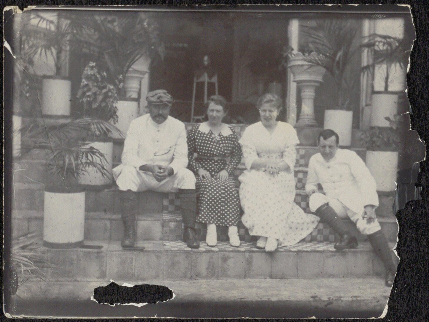 Portret van twee heren en twee dames op de trap voor...