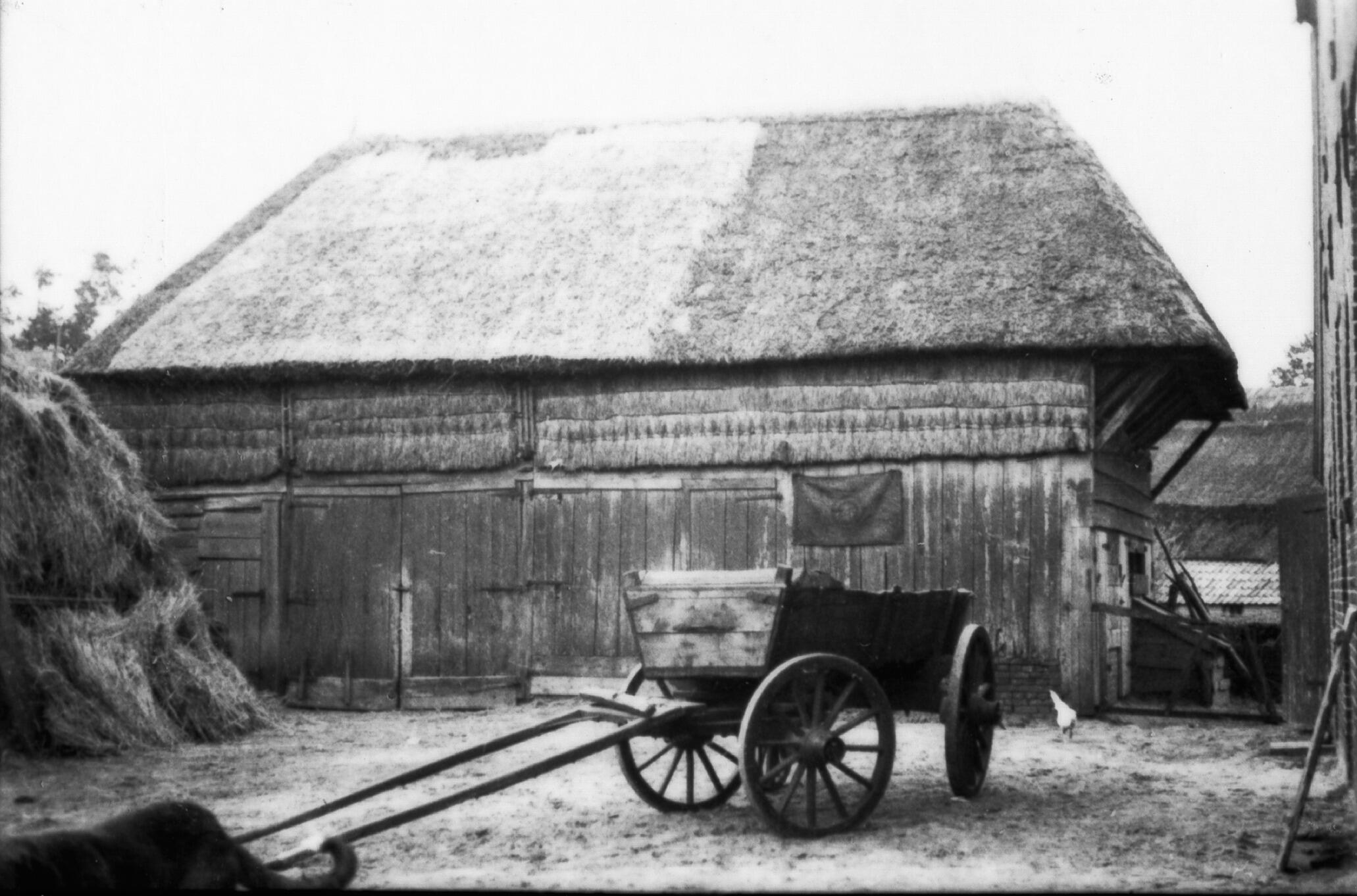 Bijschuur en boerenwagen, Zwiggelte, 1937 (zwart-wit...