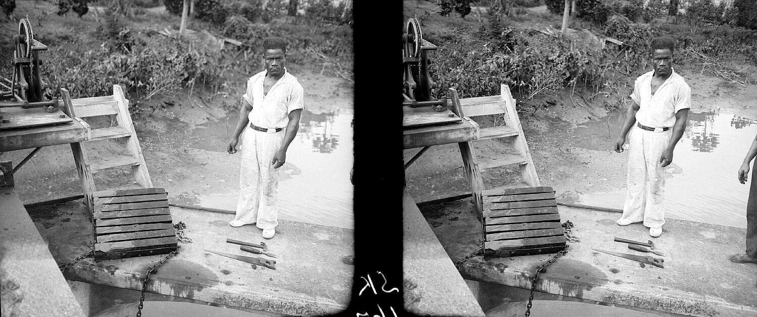 Suriname. Congo-bacoven op de proefvelden van de Sur...