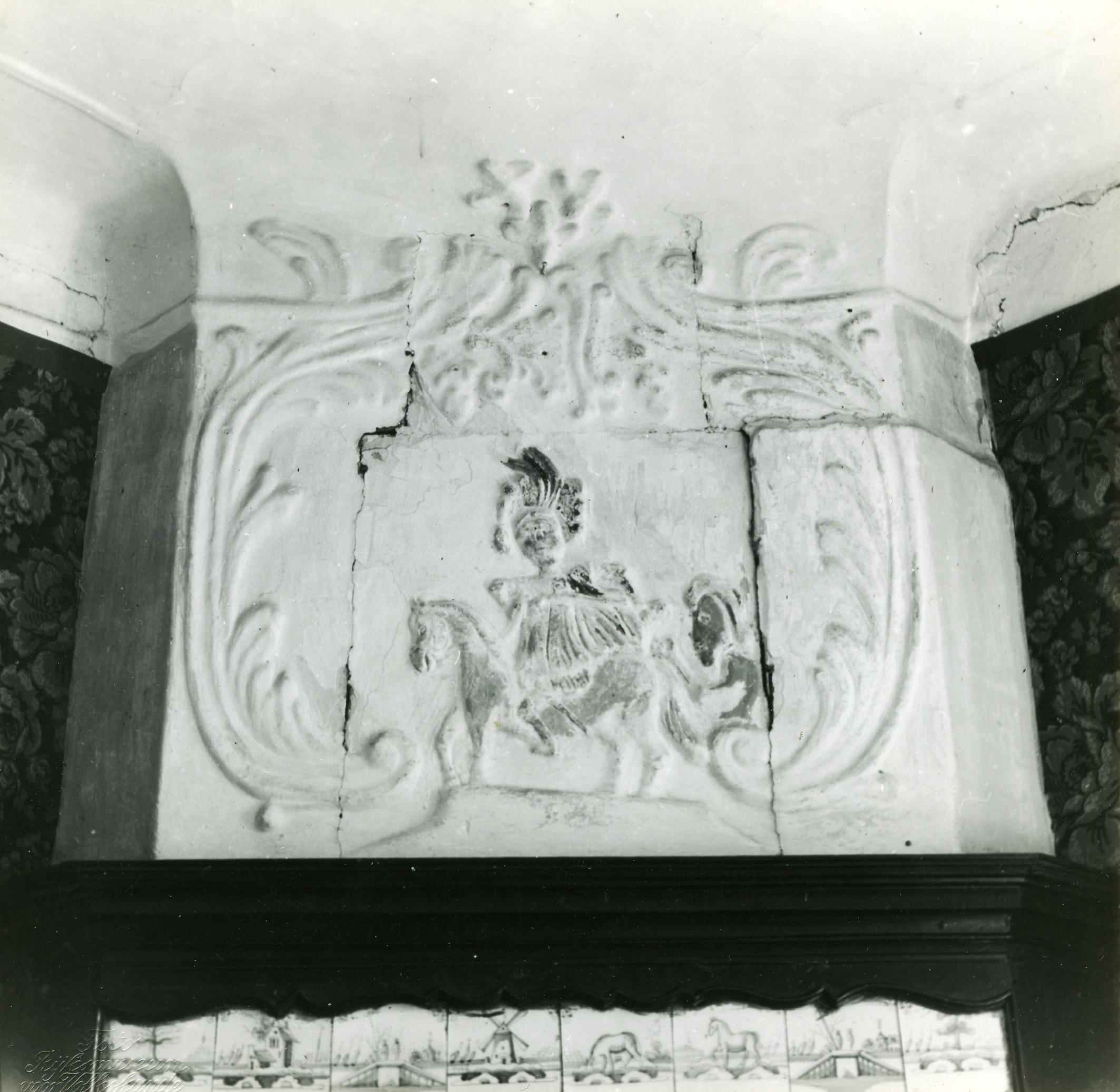 Schoorsteenmantel met reliëf, Houthem, 1943 (zwart-w...
