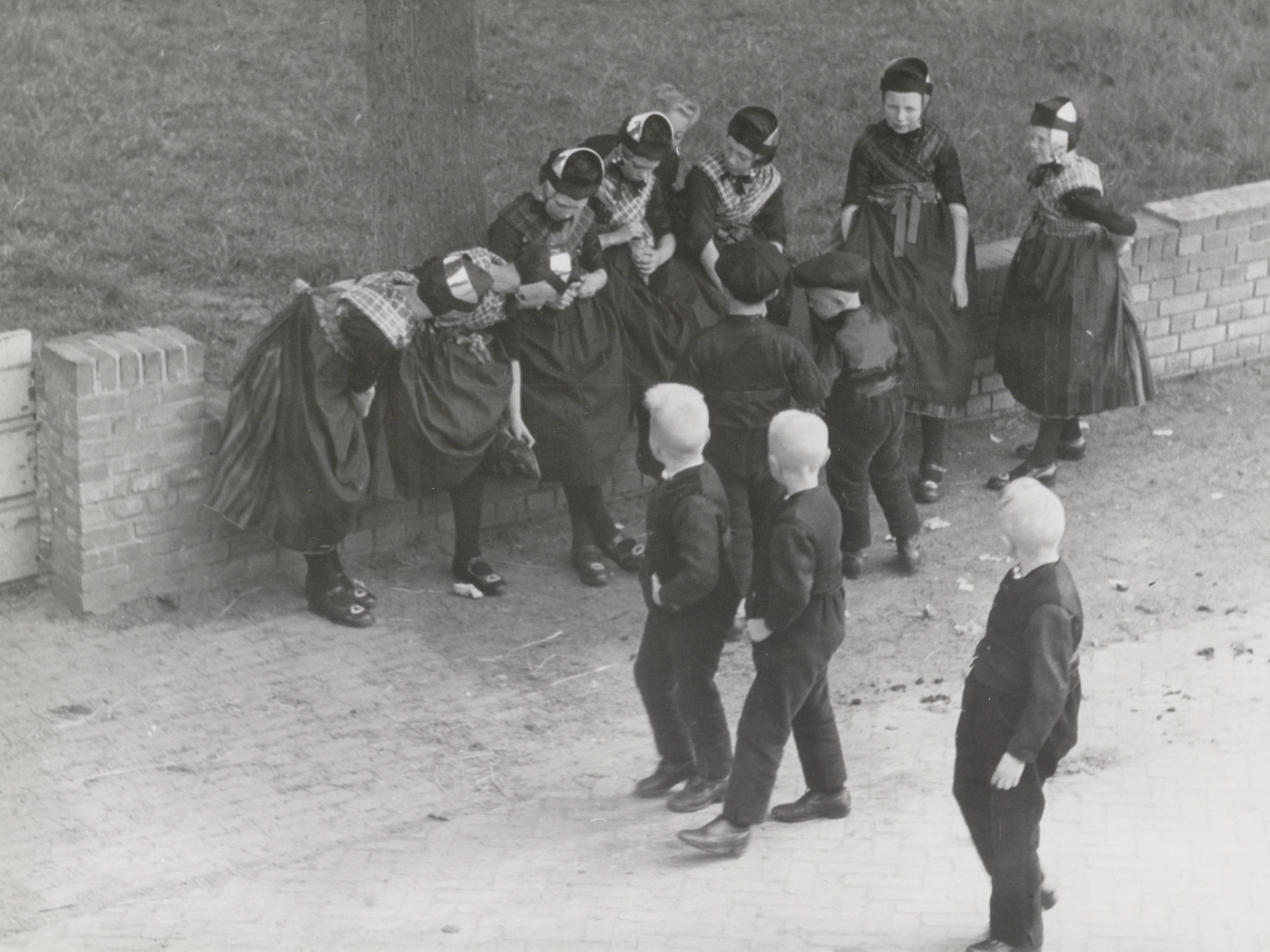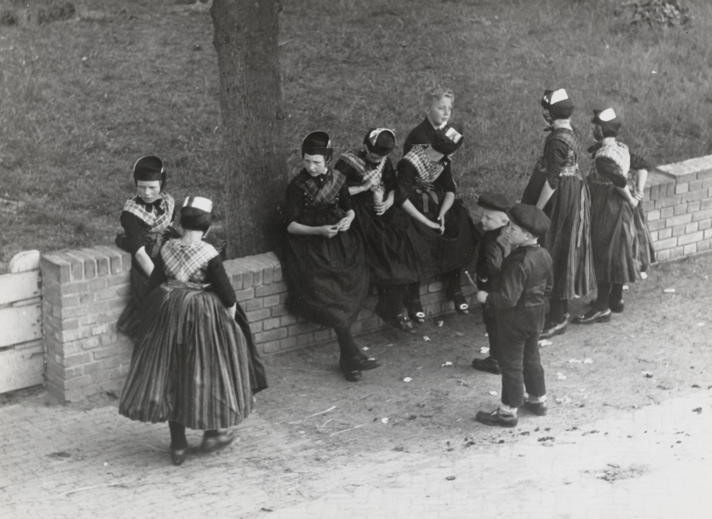 Meisjes in streekdracht, Staphorst, 1944 (zwart-wit ...