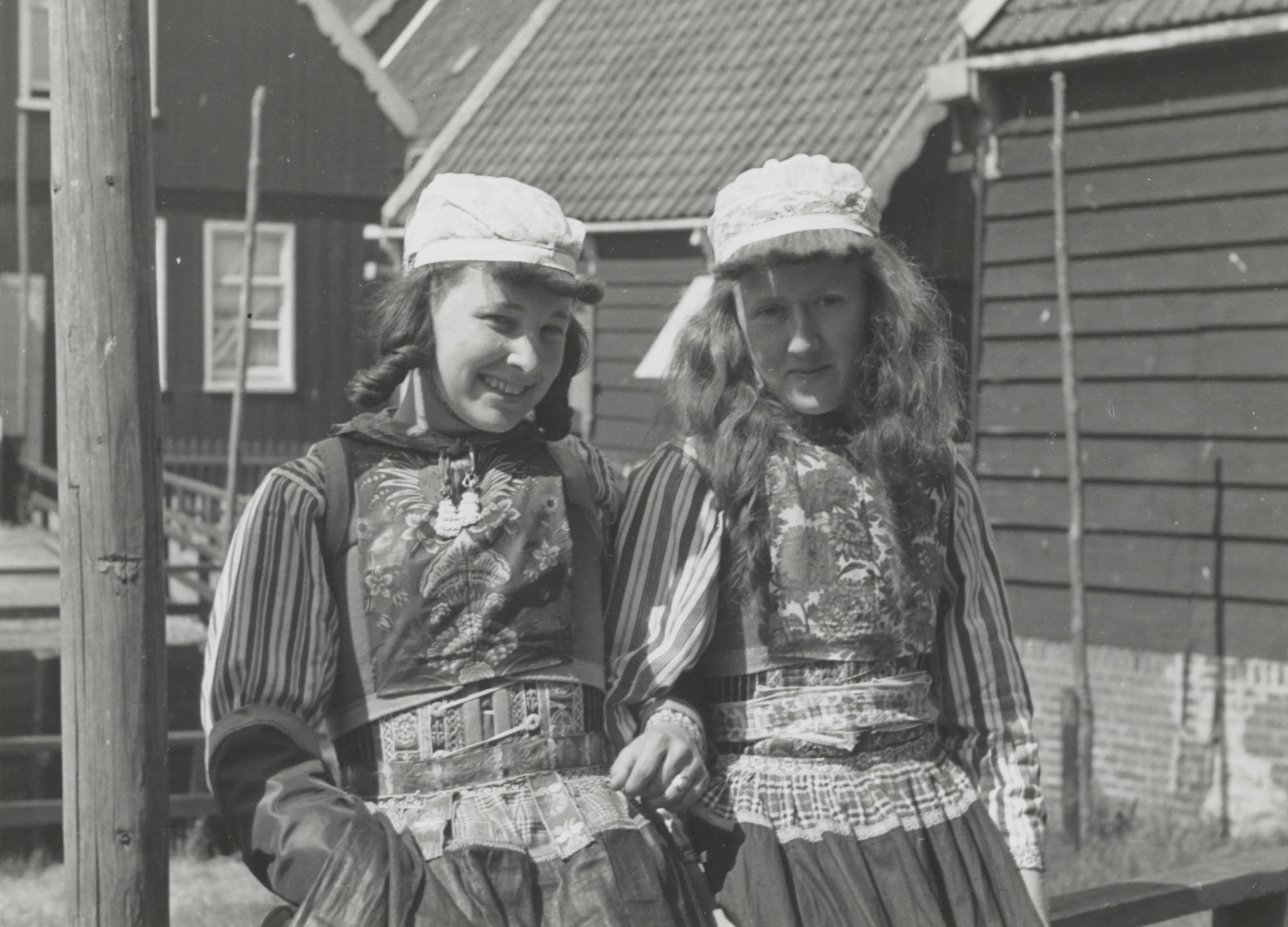 Twee vrouwen in Marker streekdracht, 1944 (zwart-wit...