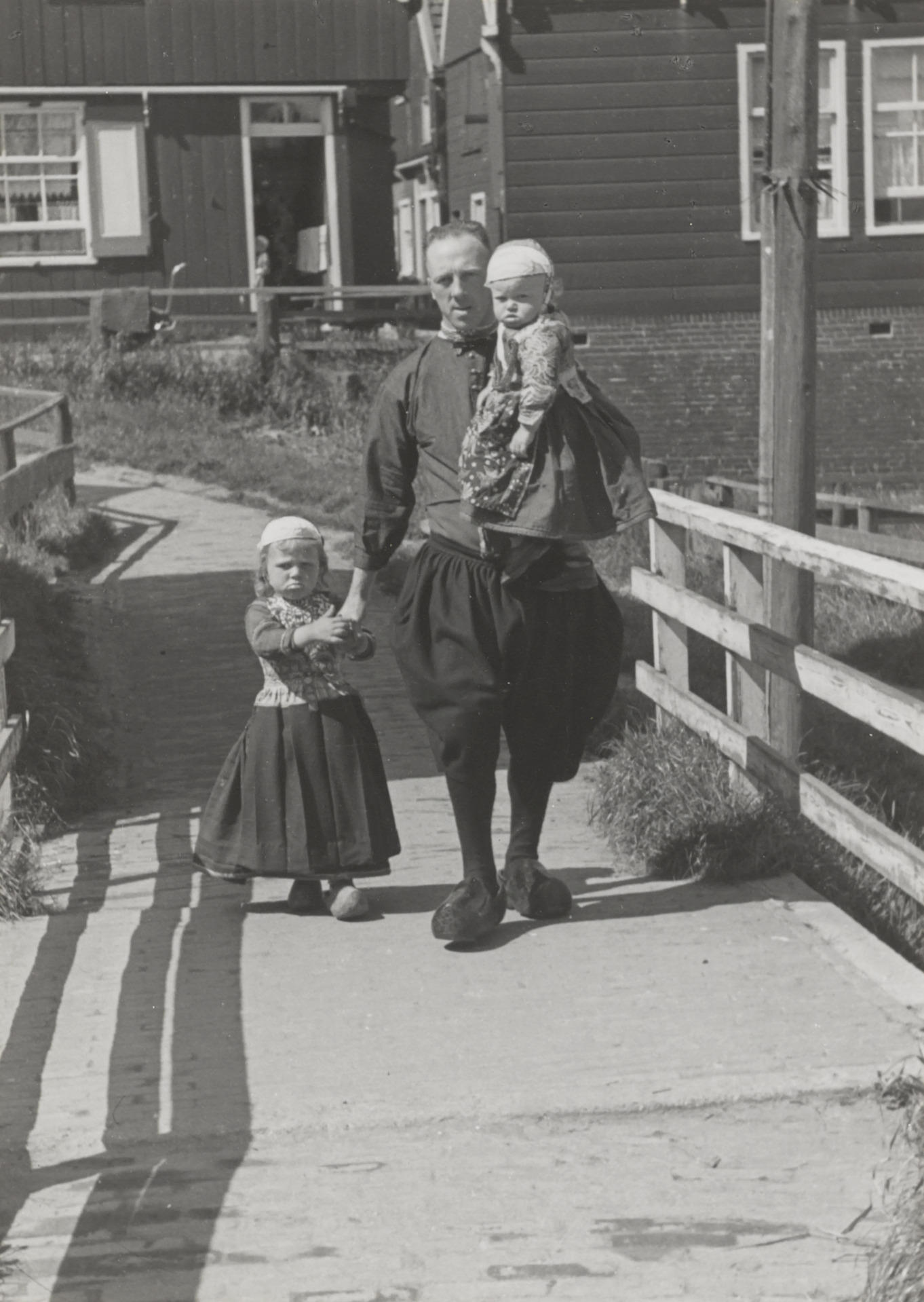 Klaas Visser en twee kinderen in Marker dracht, 1944...