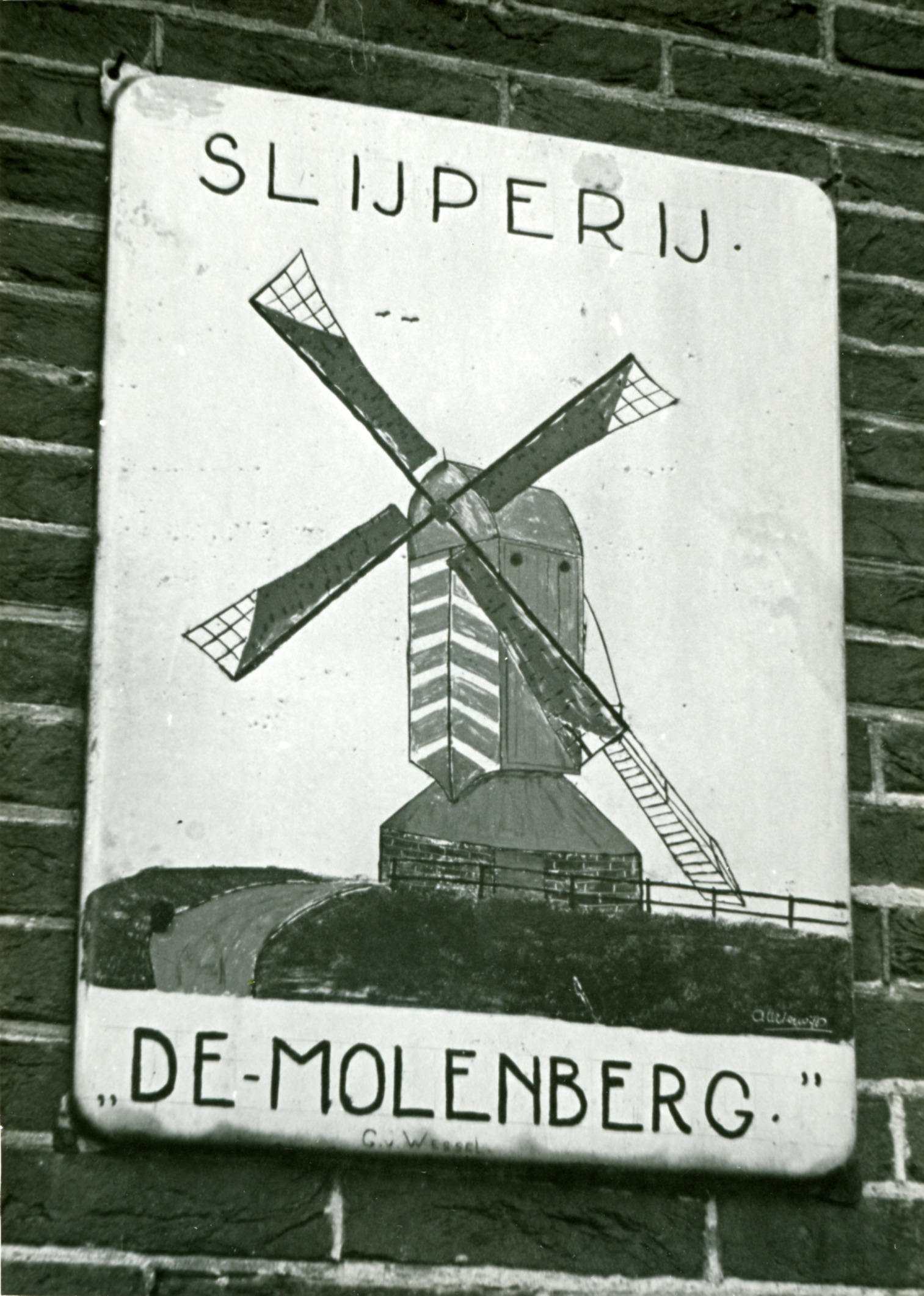 Reclamebord van slijperij 'De Molenberg', Huizen, 19...