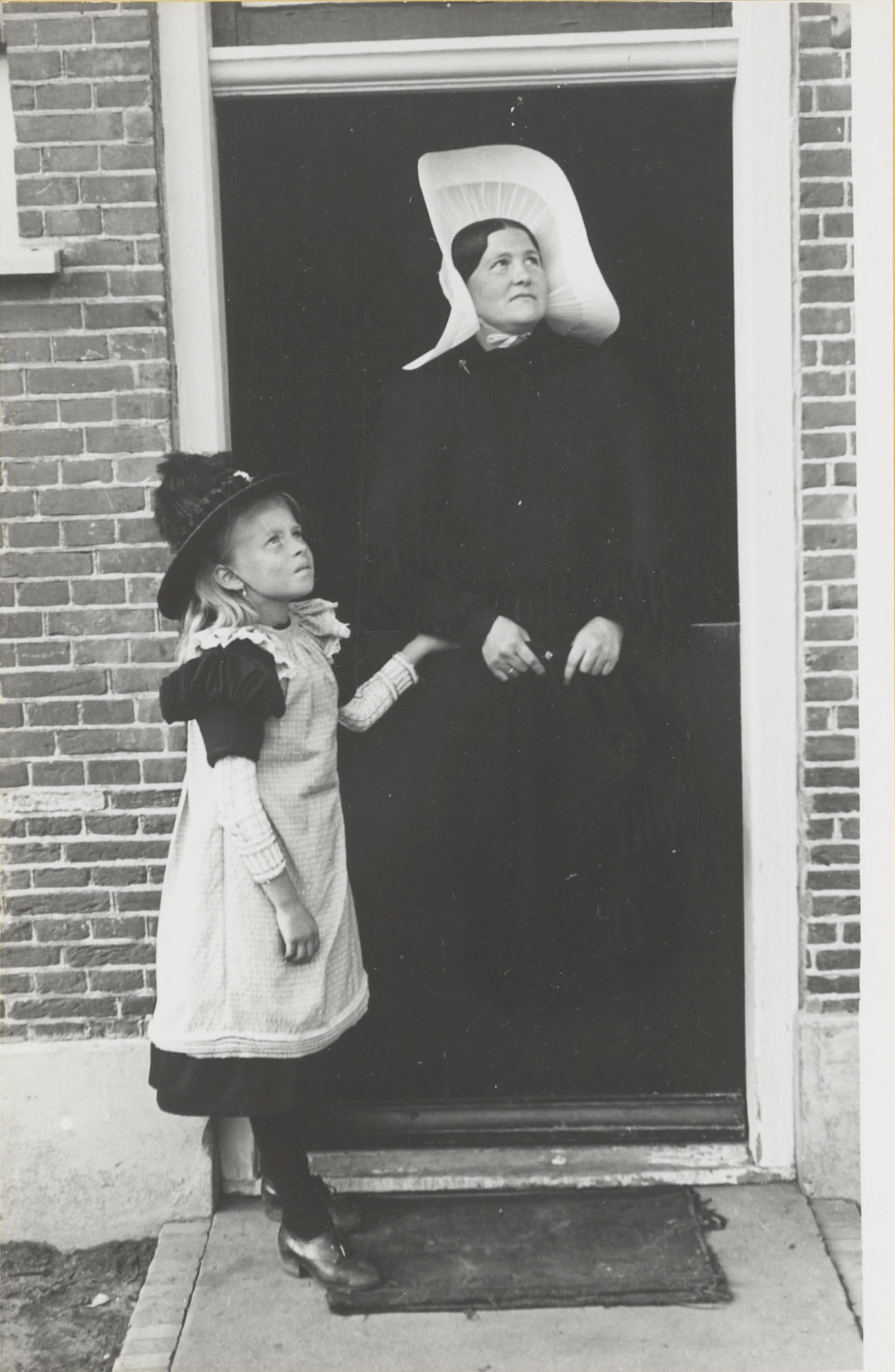 Vrouw en meisje in streekdracht, Huizen, 1945 (zwart...