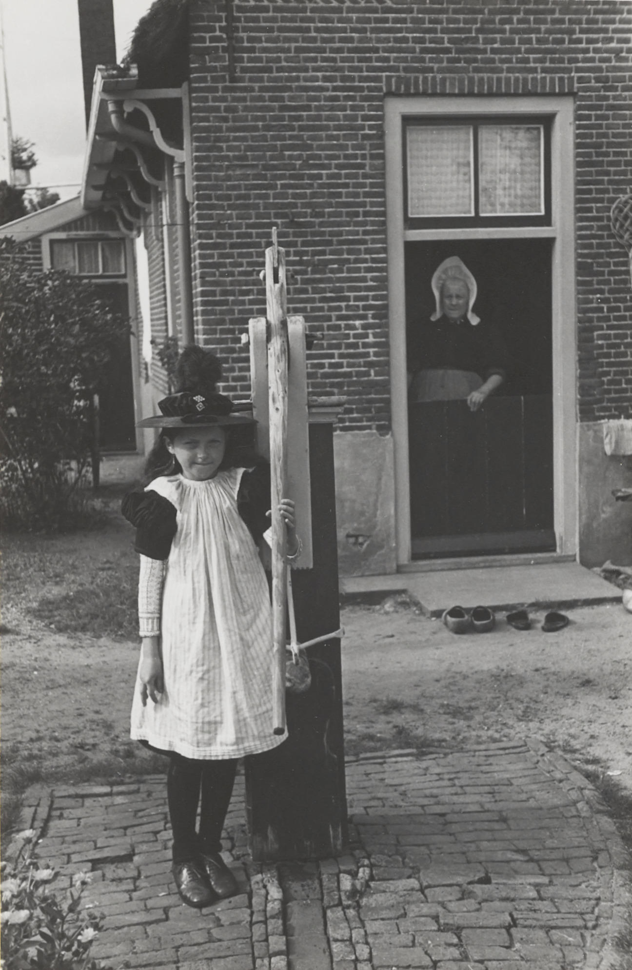 Meisje in streekdracht, Huizen, 1945 (zwart-wit foto)