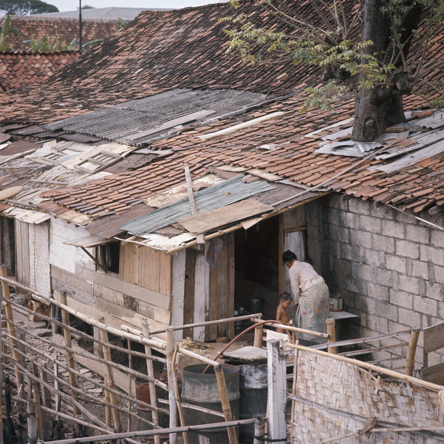 Onderkomens van mensen die naar de stad zijn getrokk...