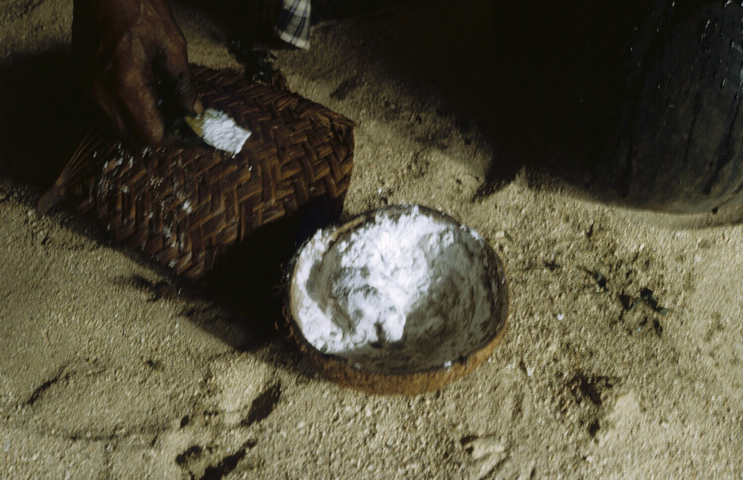 Kalebas met krijt wat gebruikt wordt om de verfstof ...