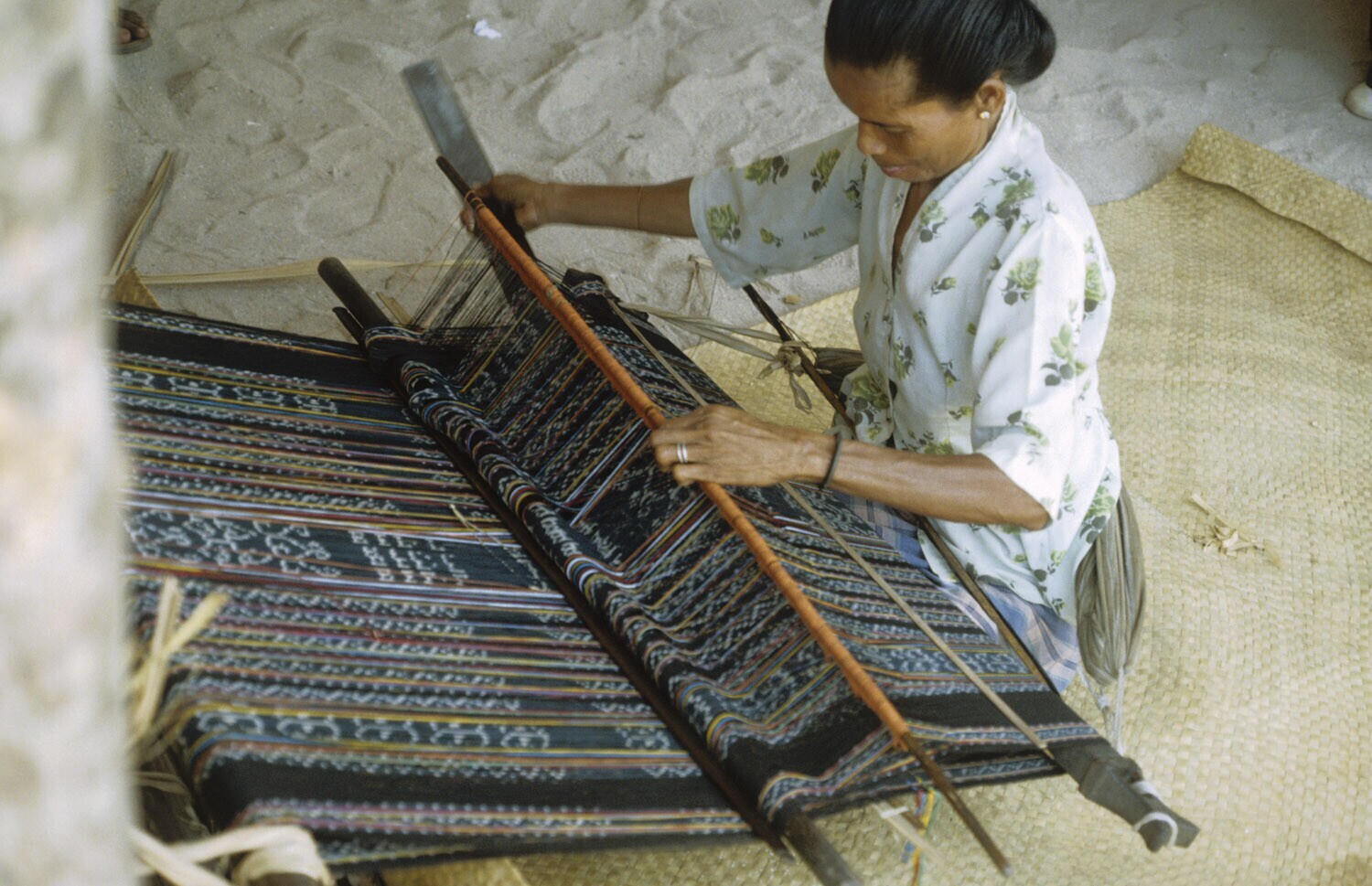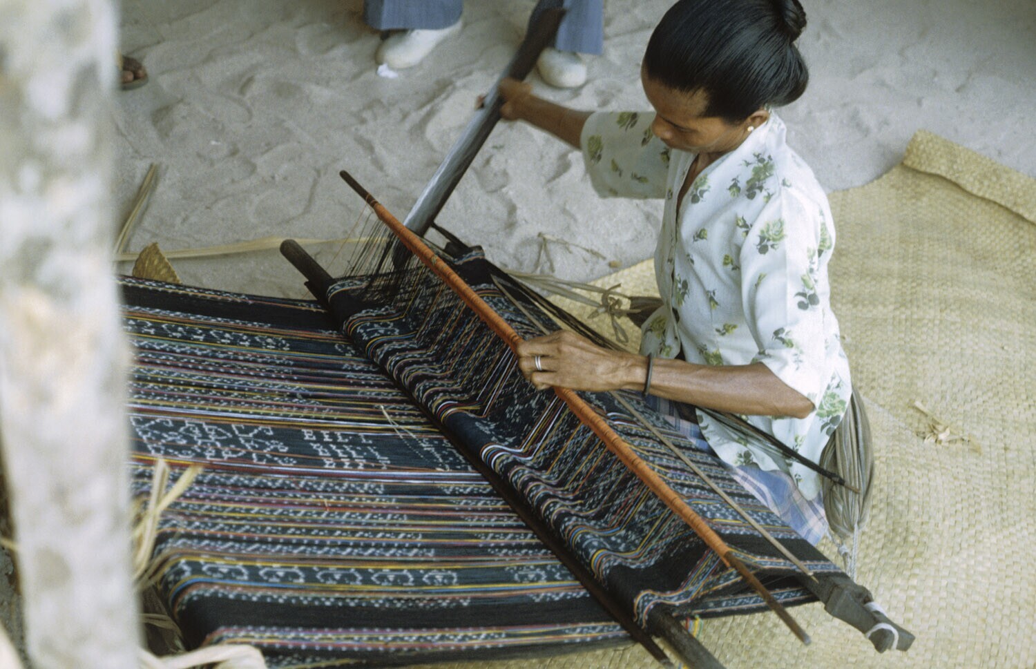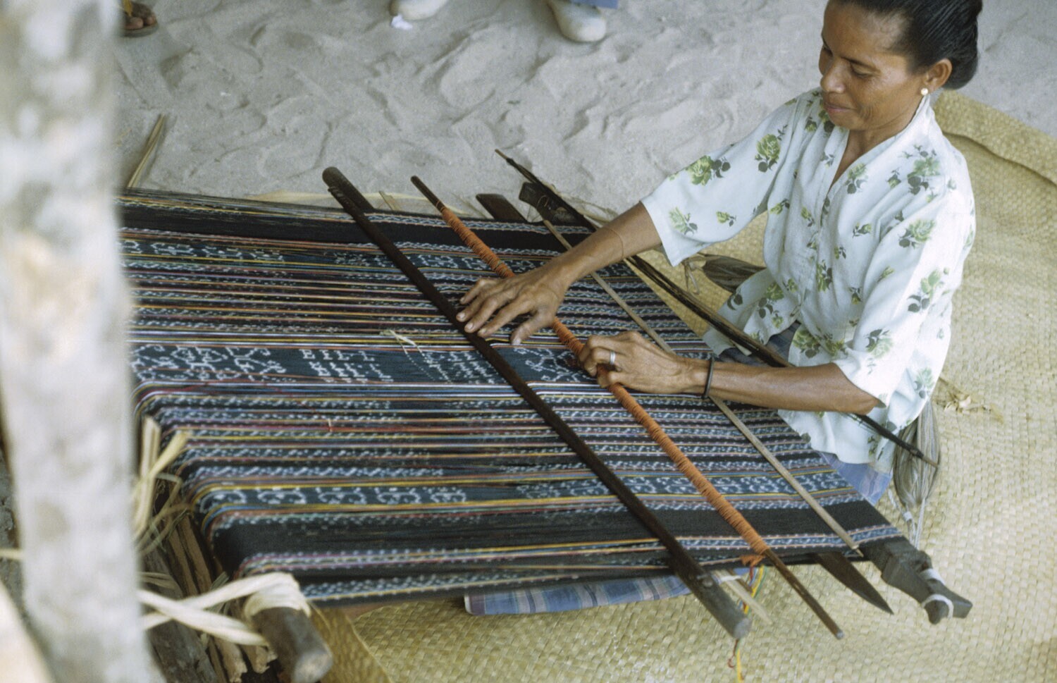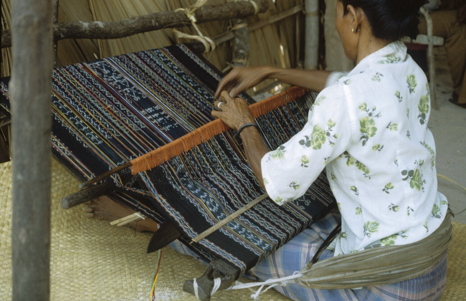 Weven van een ikatweefsel. Kandar op Selaru, Molukken.