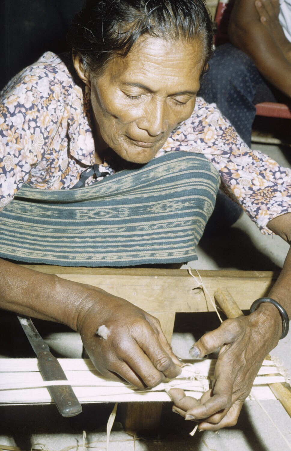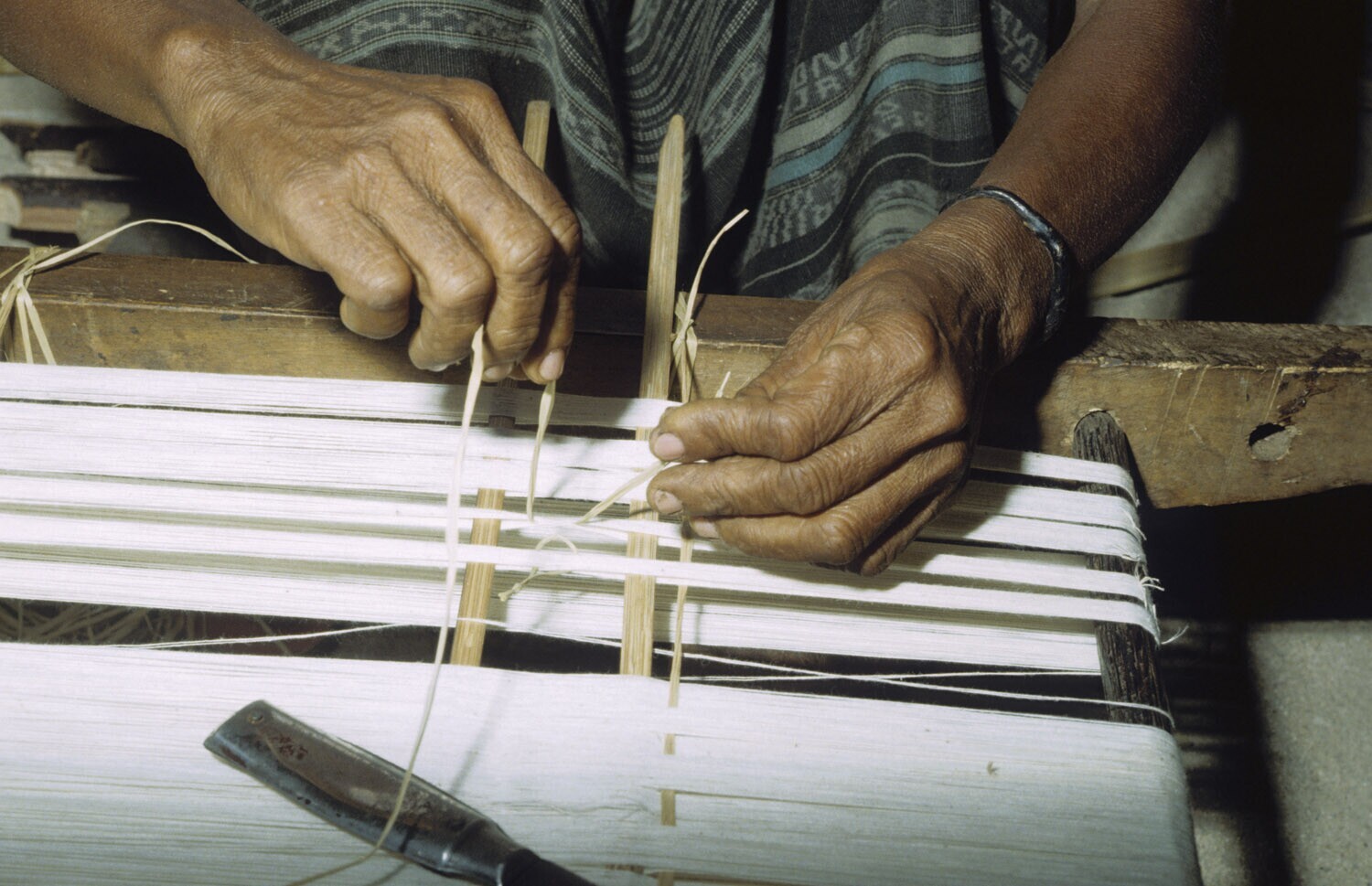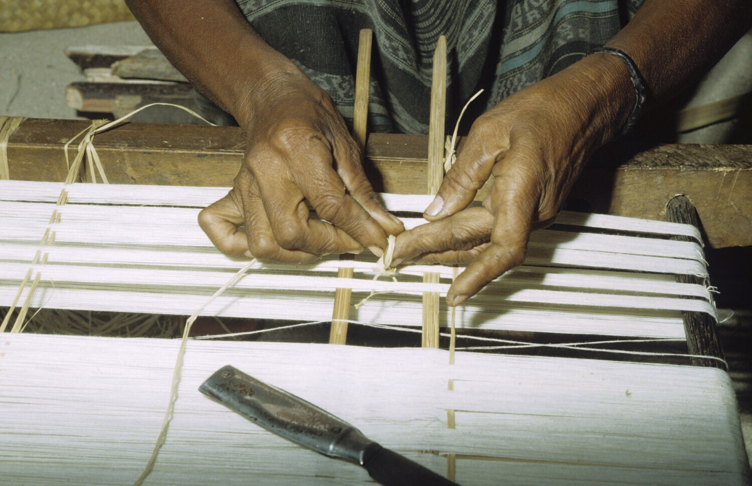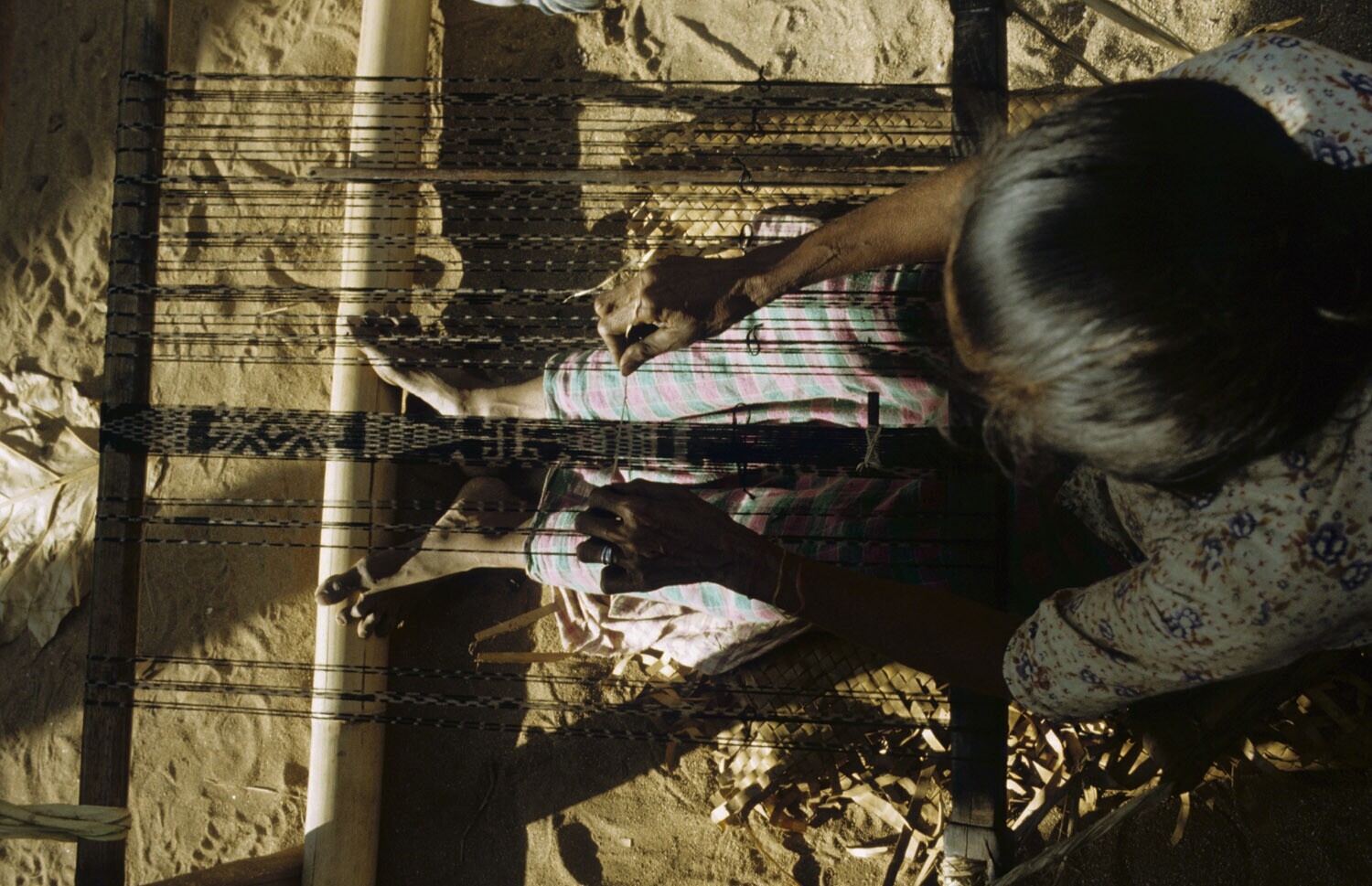Weven van een ikatweefsel. Kandar op Selaru, Molukken.
