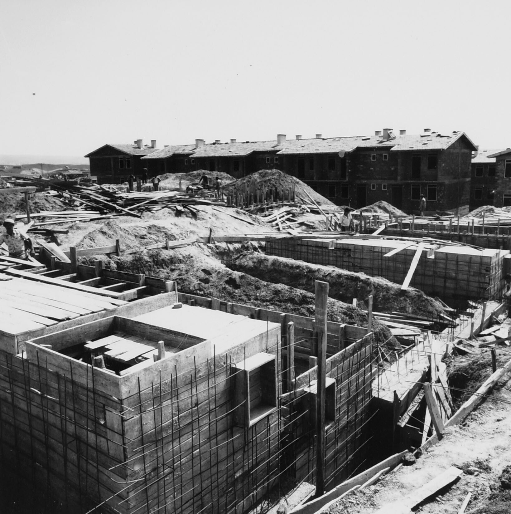 Een flatgebouw in aanbouw