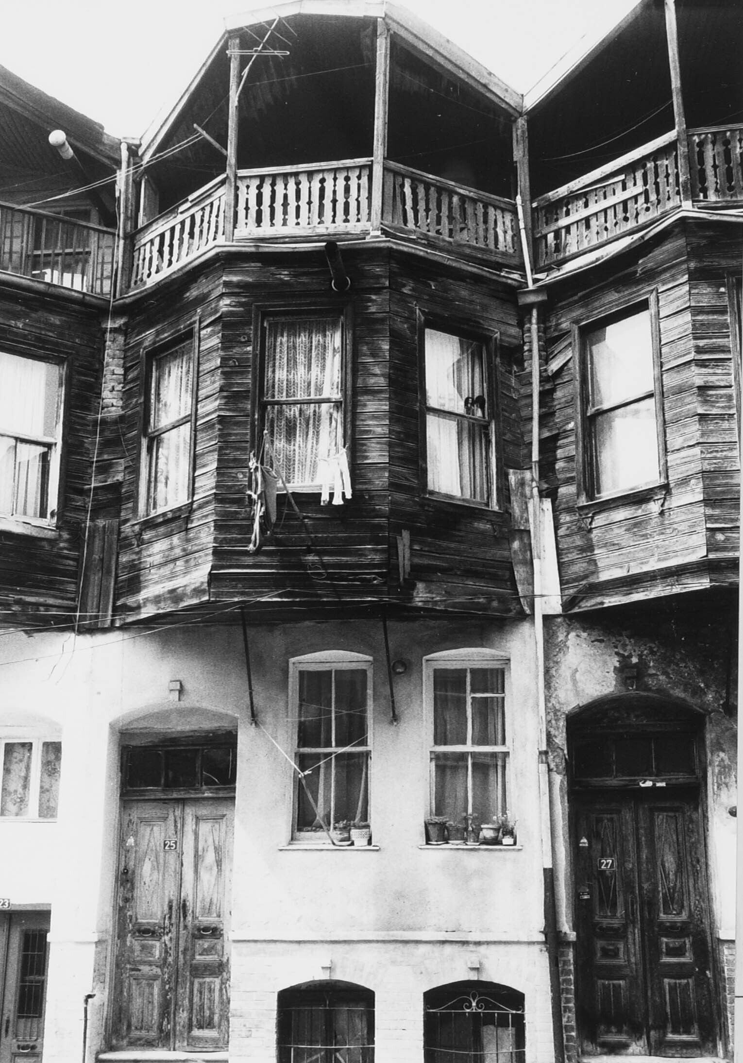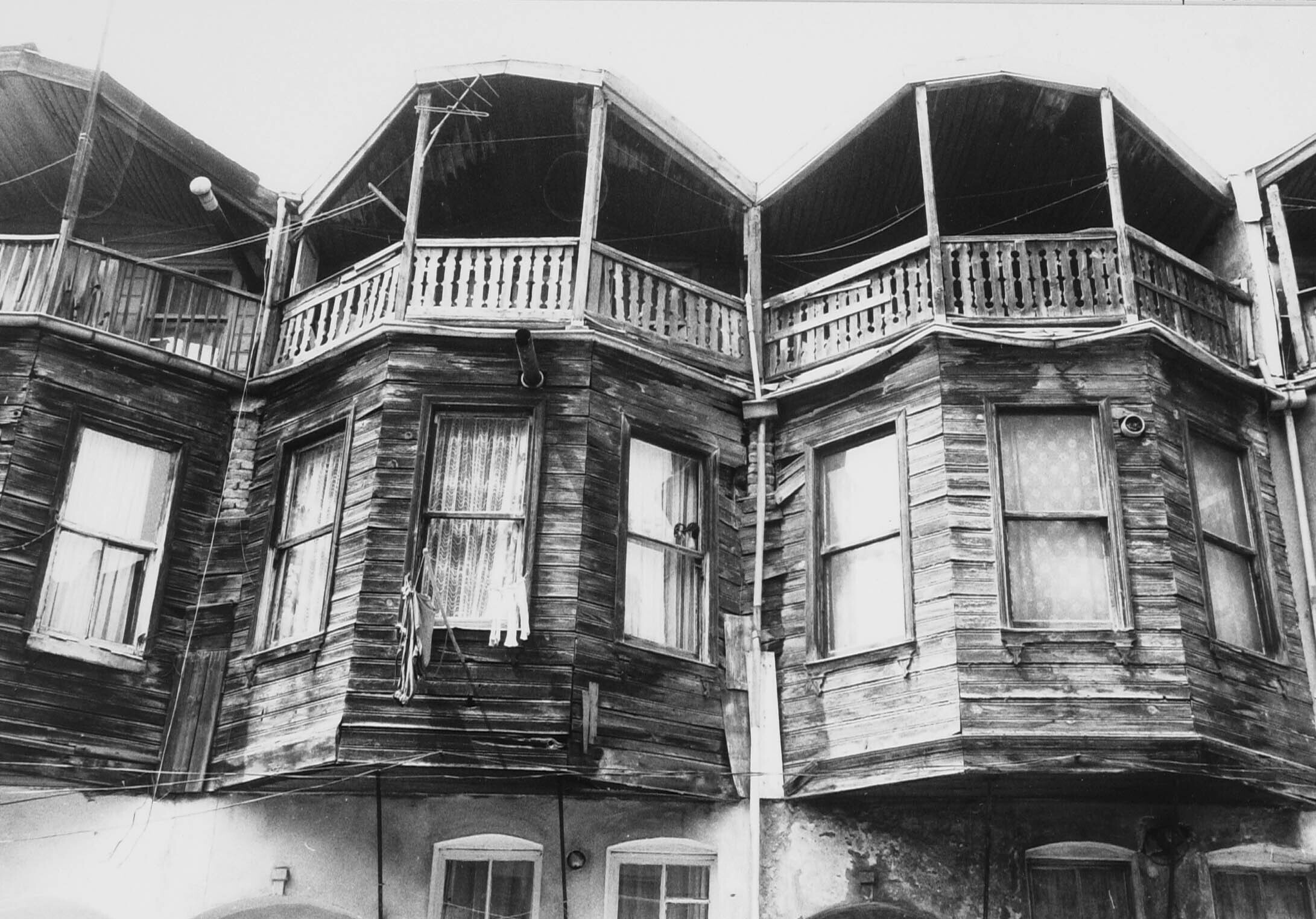 Oude houten Turkse woningen in de wijk Balat, deze h...