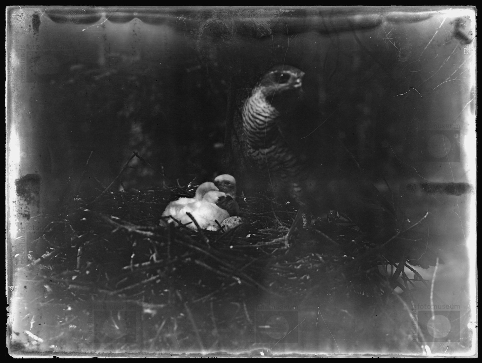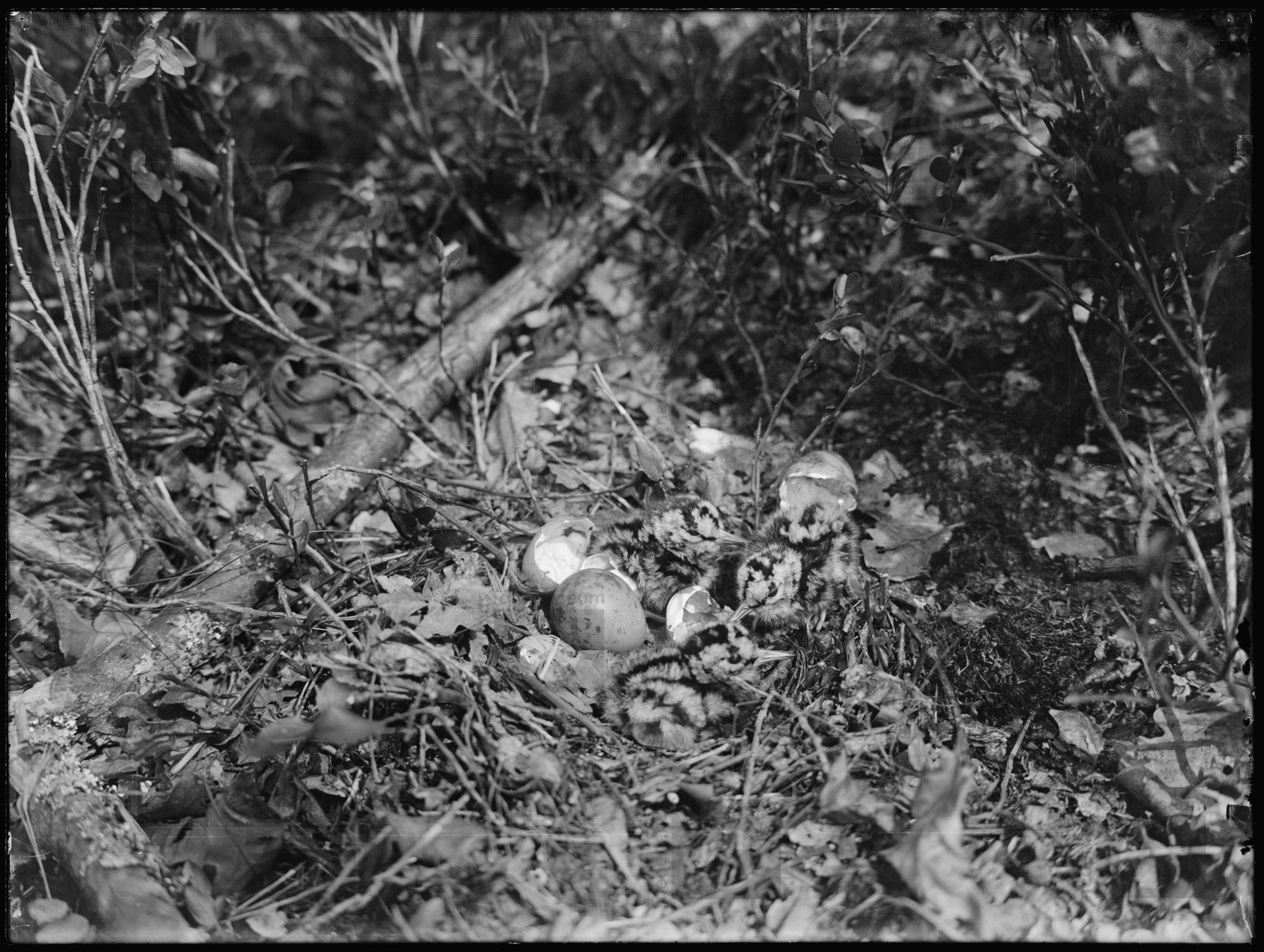 Nest met jongen en ei van Houtsnip, Hoog Soeren (1912)