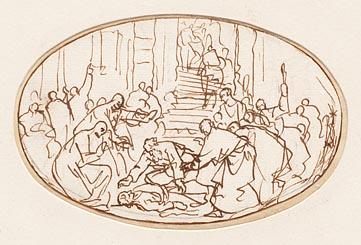 Paulus buigt zich over de neergestorte Eutychus