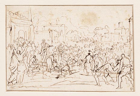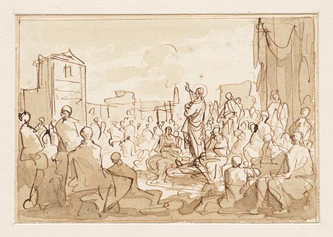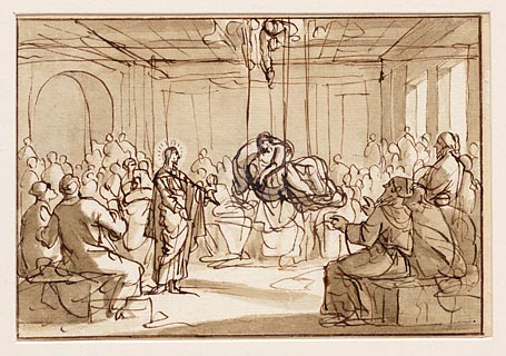 Jezus predikt in de voorhof van de tempel