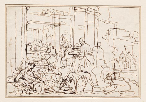 Lazarus ligt door honden belekt naast de deur van de...