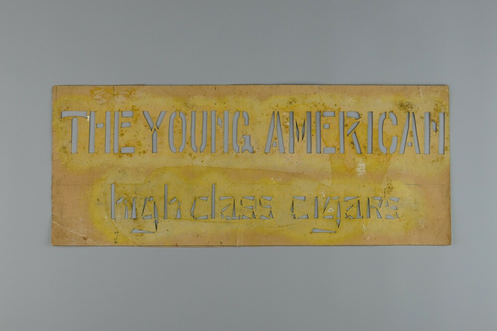 Sjabloon van karton voor opschrift: The young Amaric...