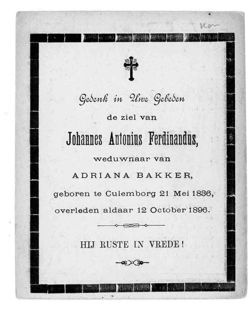 bidprent voor Johannes Antonius Ferdinandus. Geboren...