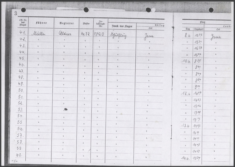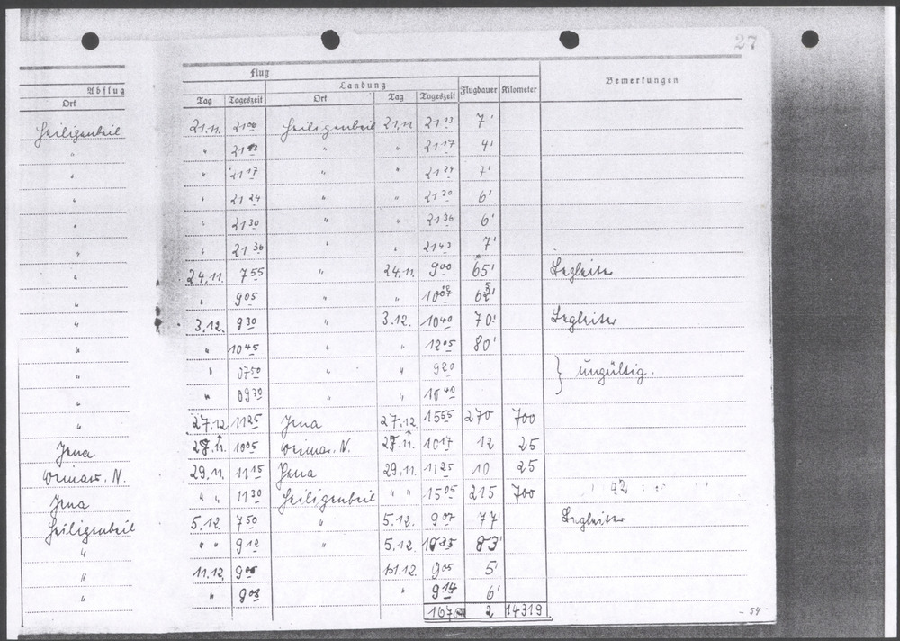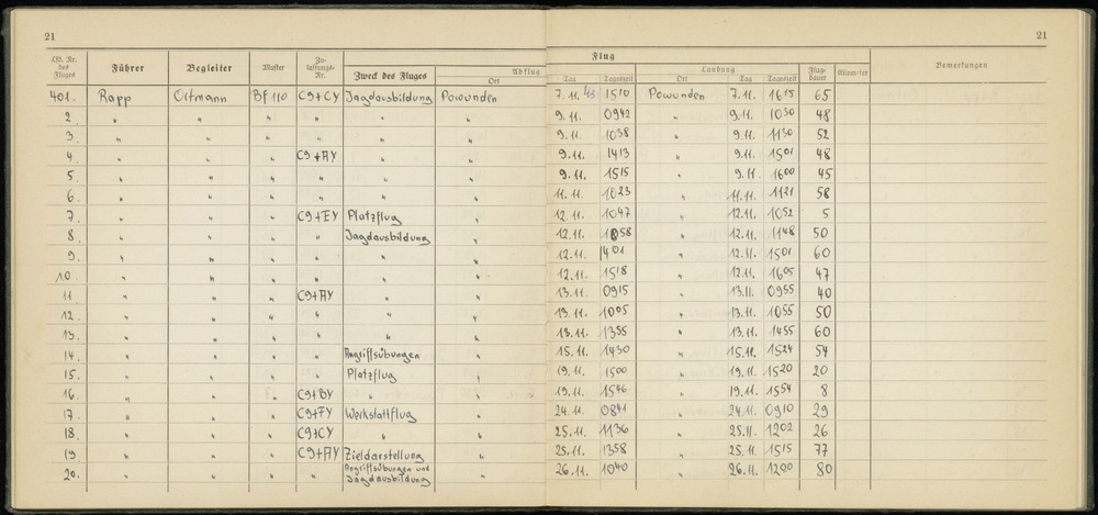 Flugbuch Hans Ortmann blad 21