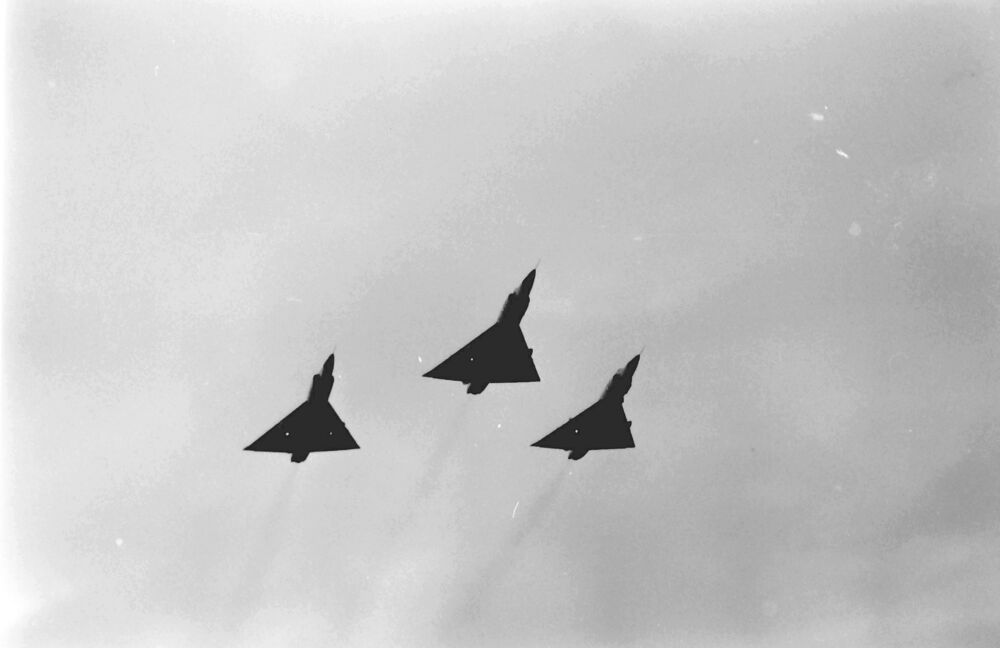 Convair F-102A Delta Dagger 32 FIS USAF in formatiev...
