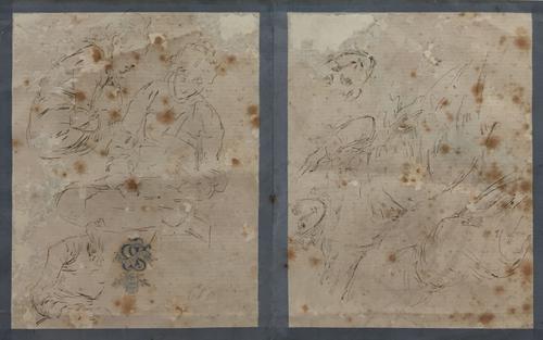 Een nettenboetster; Spelende kinderen (recto en verso)