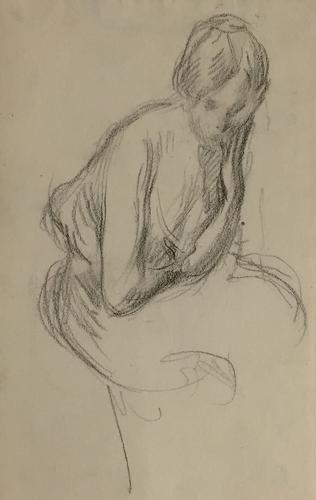 Studie van een zittende vrouw.