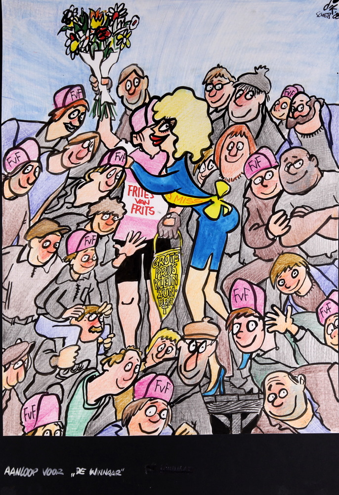 Karikatuurtekening: ‘aanloop voor de winnaar’, Dik B...