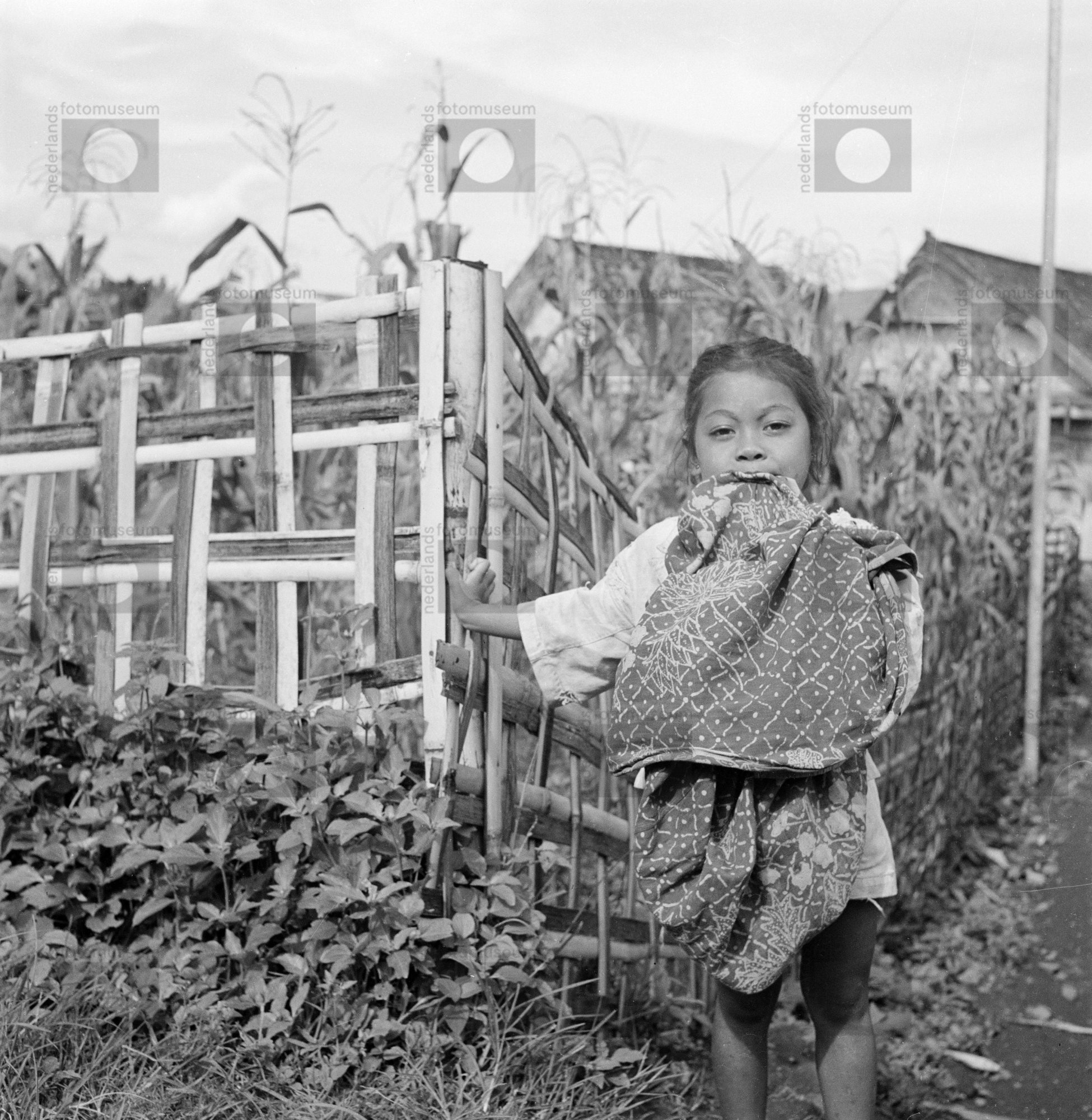 Een kind staat bij een hek, Indonesië (1947)