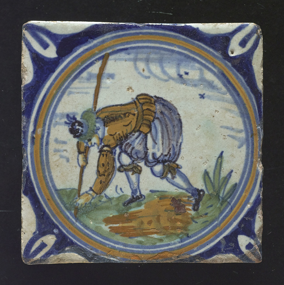 tegel van aardewerk met tinglazuur, voorstellende: m...
