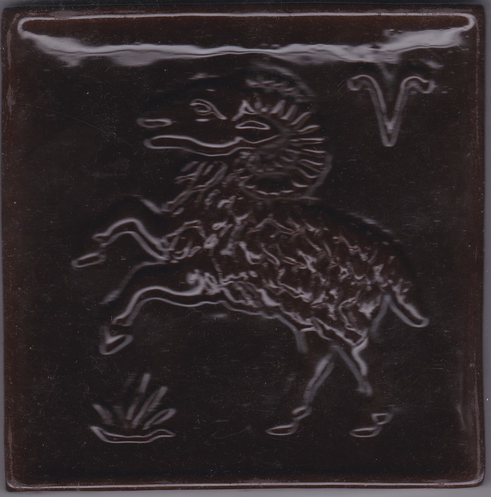 Tegel in reliëf, met voorstelling: sterrenbeeld ram,...