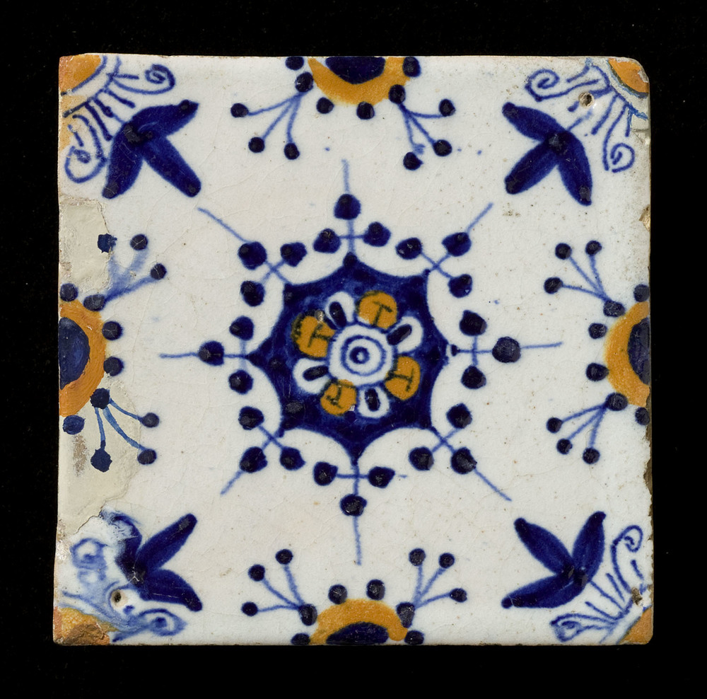 Vloertegel van keramiek, tinglazuur, waarschijnlijk ...