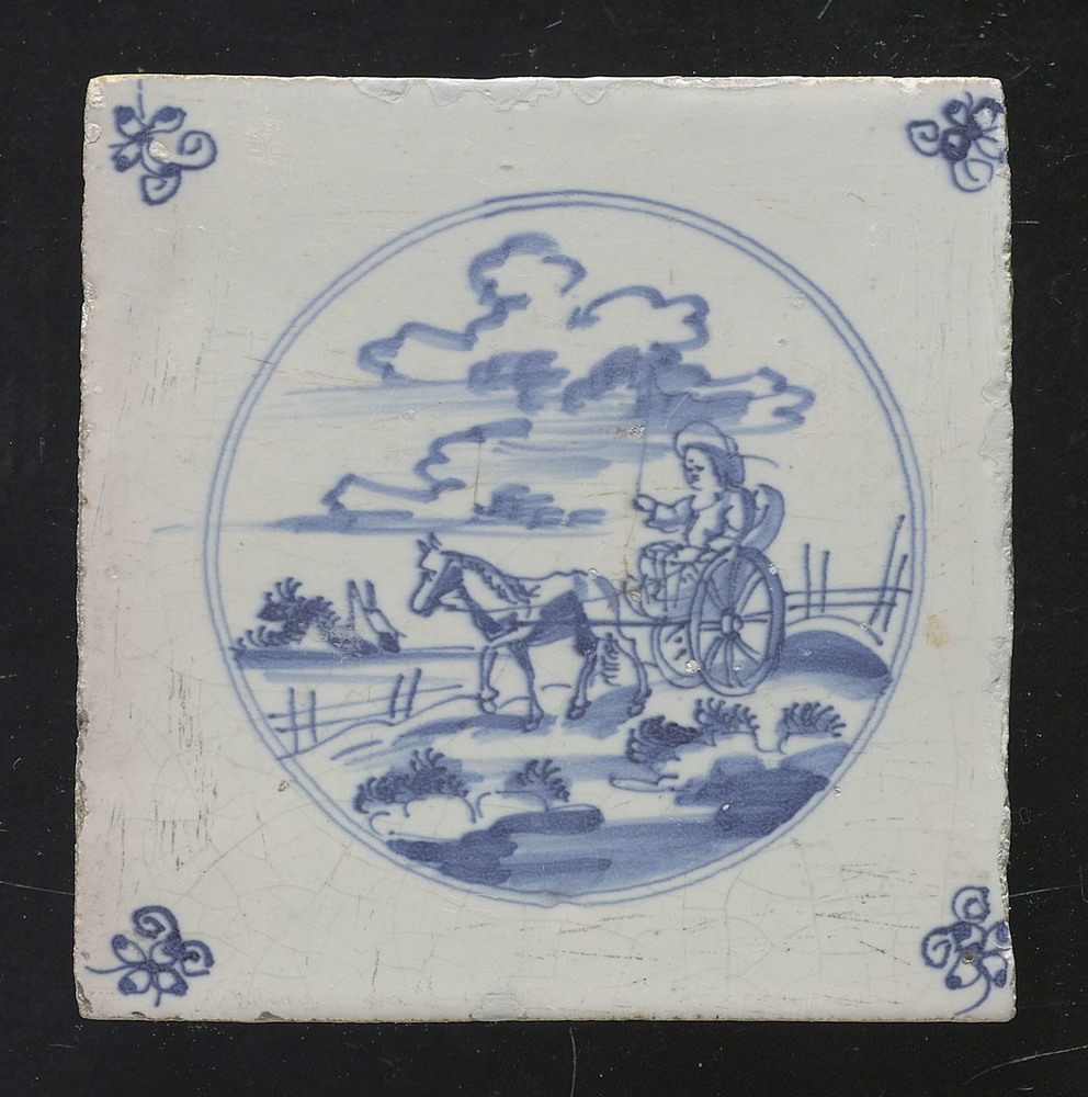 tegel van aardewerk in onderglazuur, voorstellende: ...