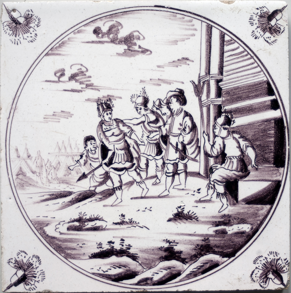 tegel van keramiek met tinglazuur, voorstellende: De...