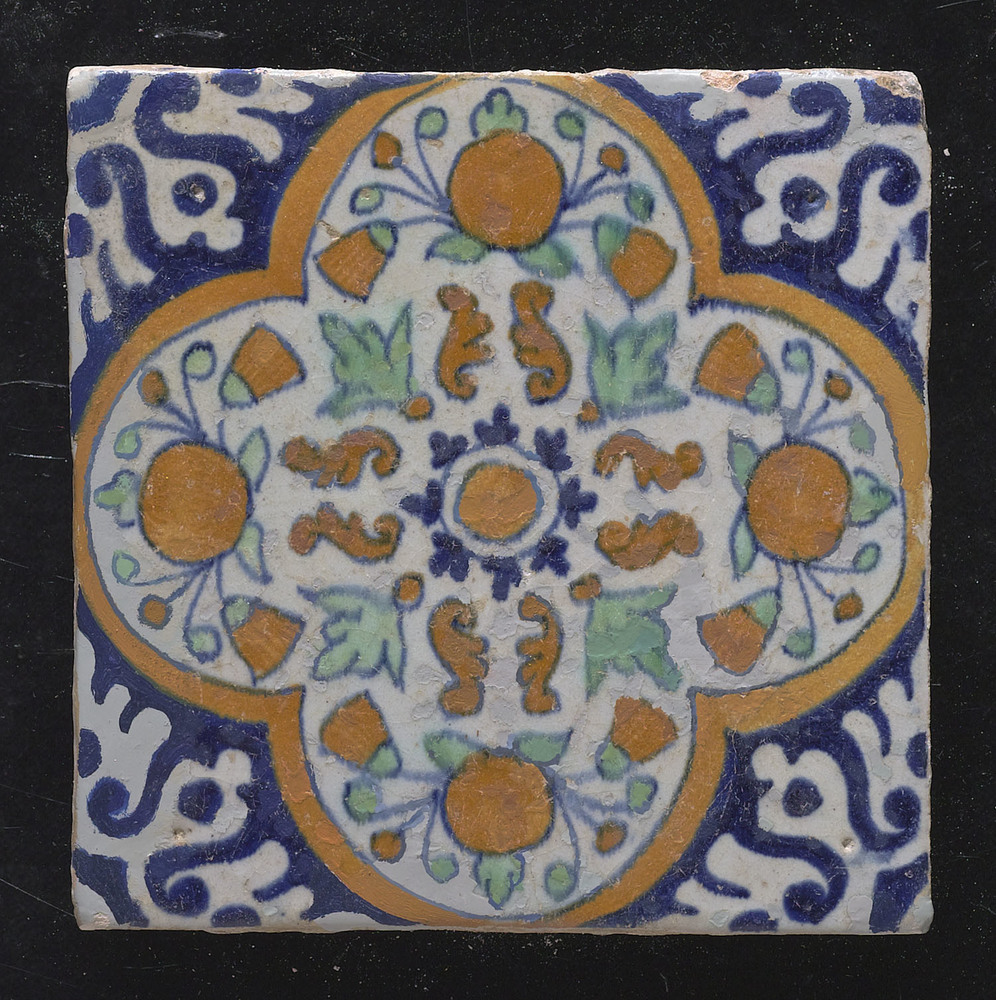 Tegel in tinglazuur, rozet met granaatappels en drui...