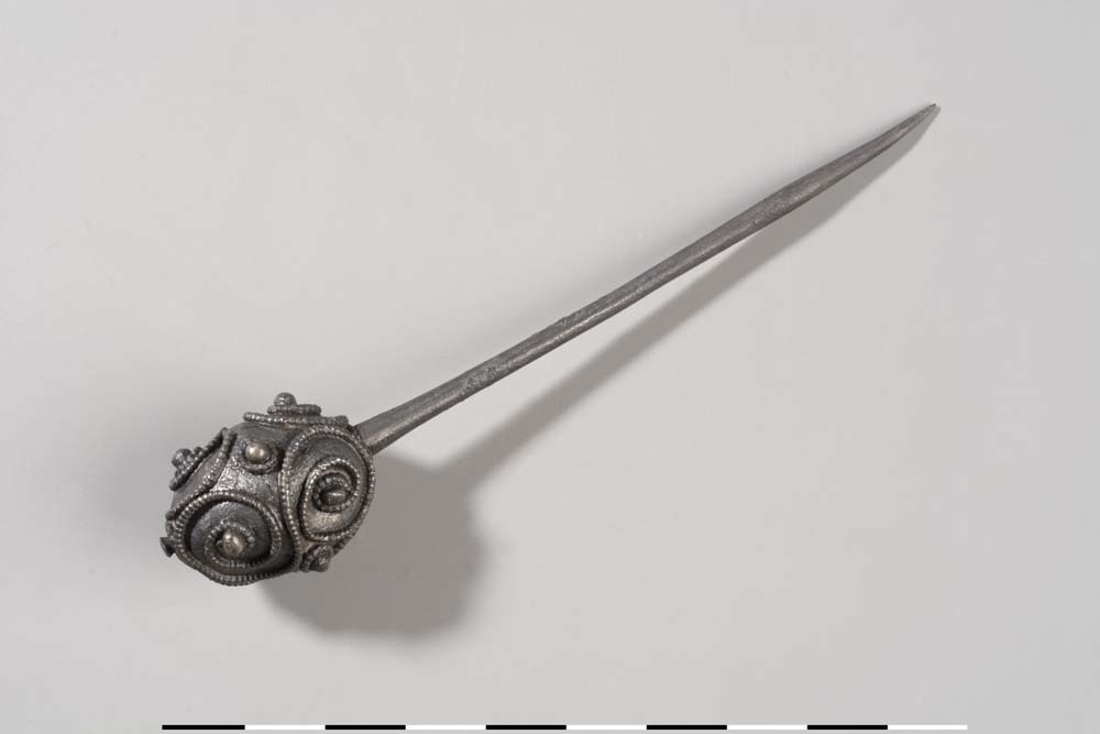 Zilveren kledingnaald uit de vroege middeleeuwen