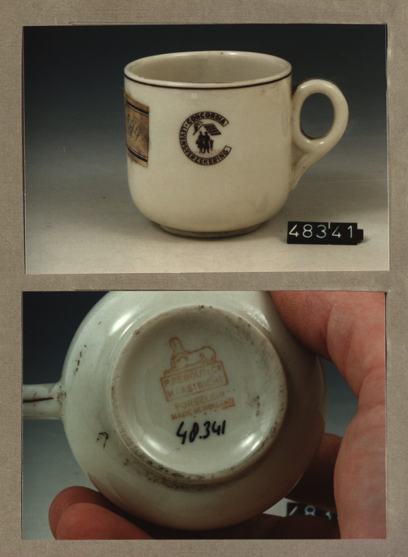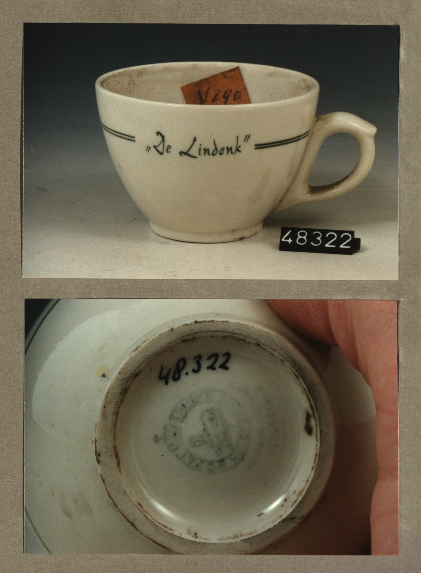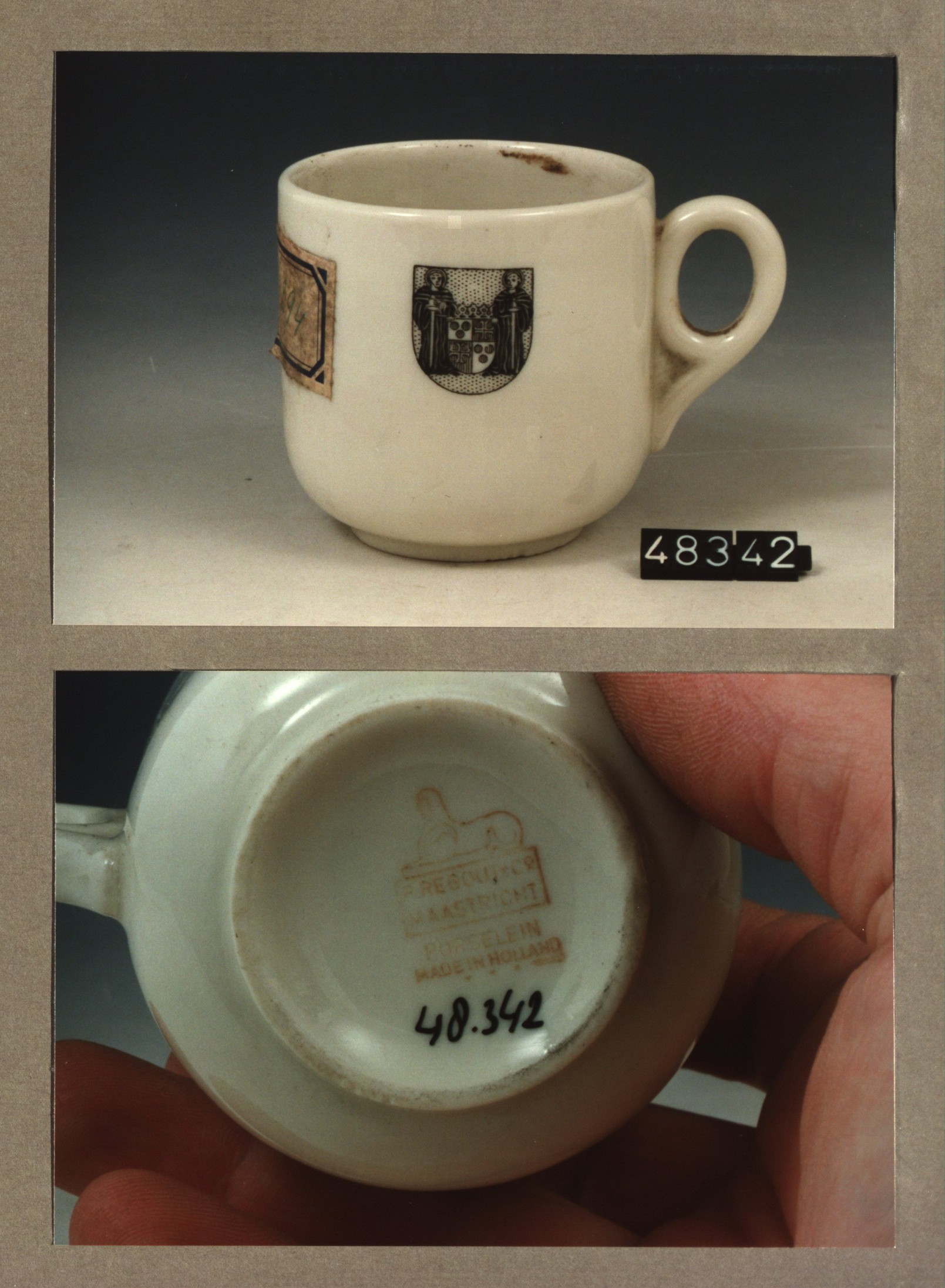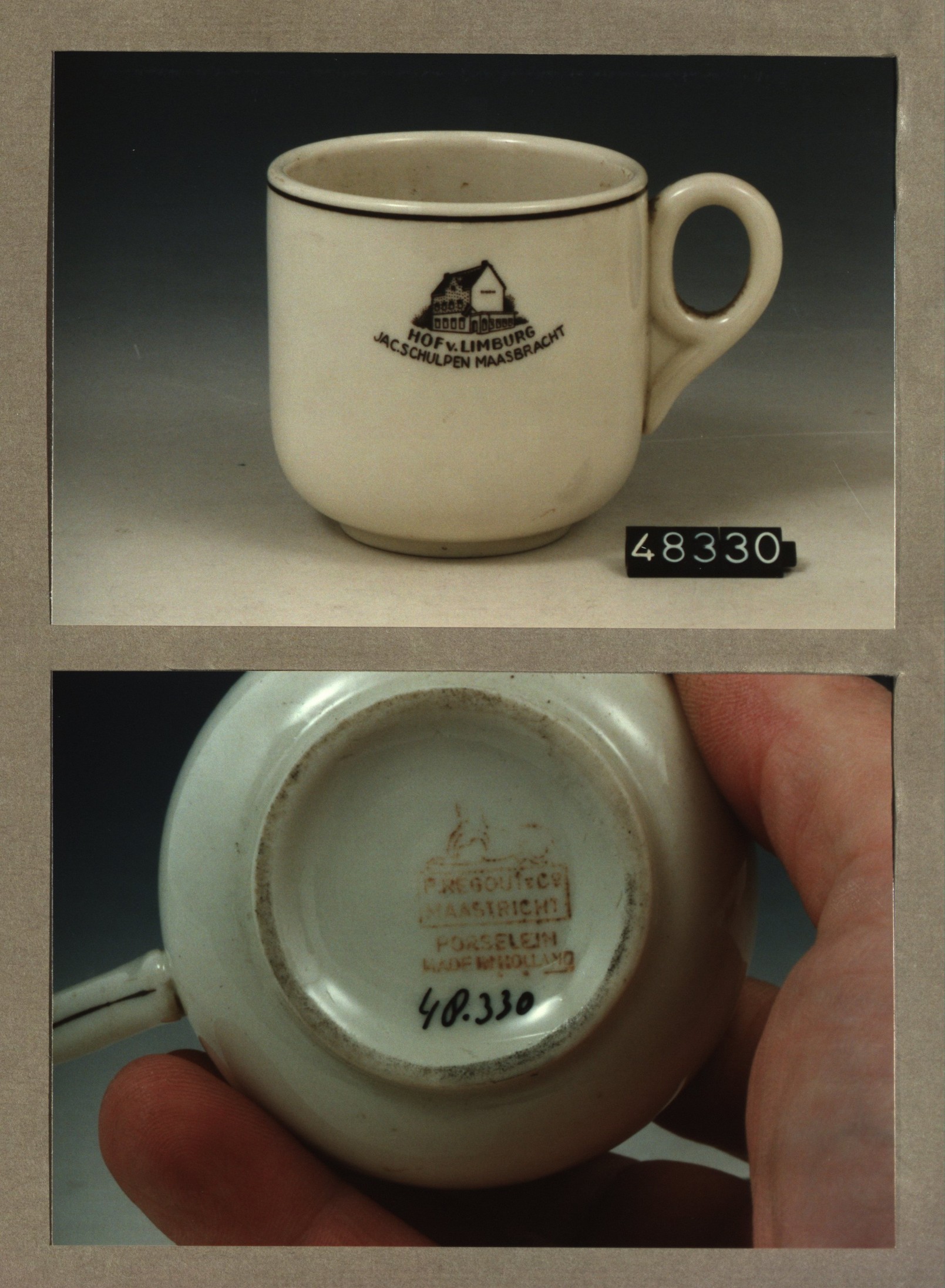 Kop met opschrift, model F met decor Hof v. Limburg ...
