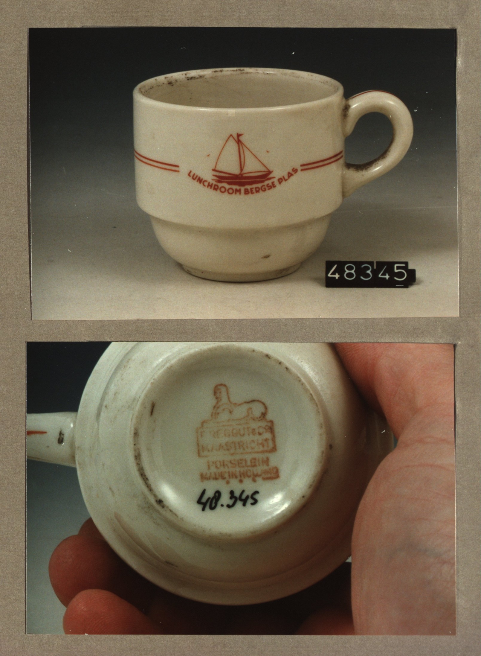 Kop met opschrift, model A met decor Lunchroom Bergs...