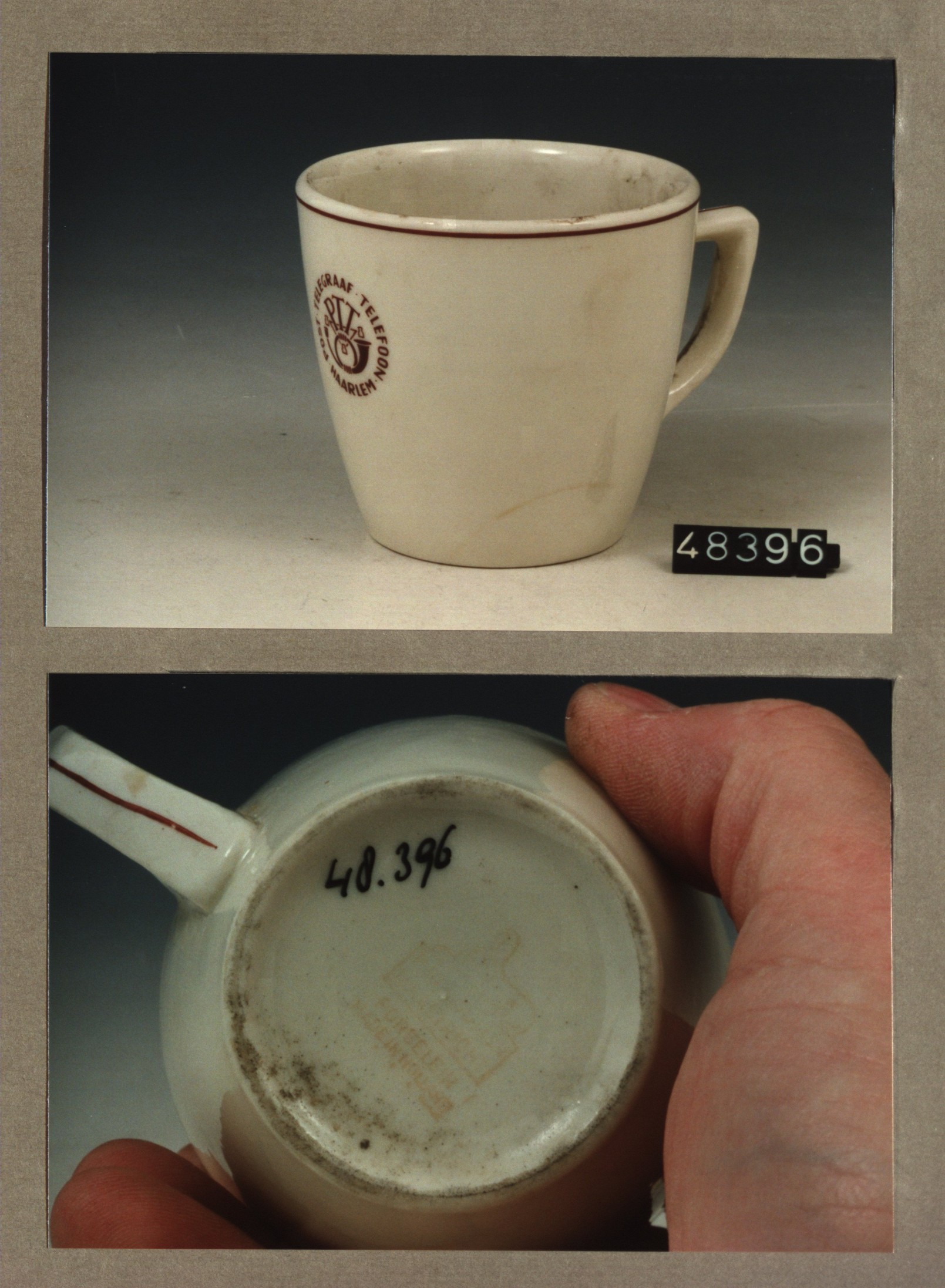Kop met opschrift, model P met decor Cafetaria t' pi...
