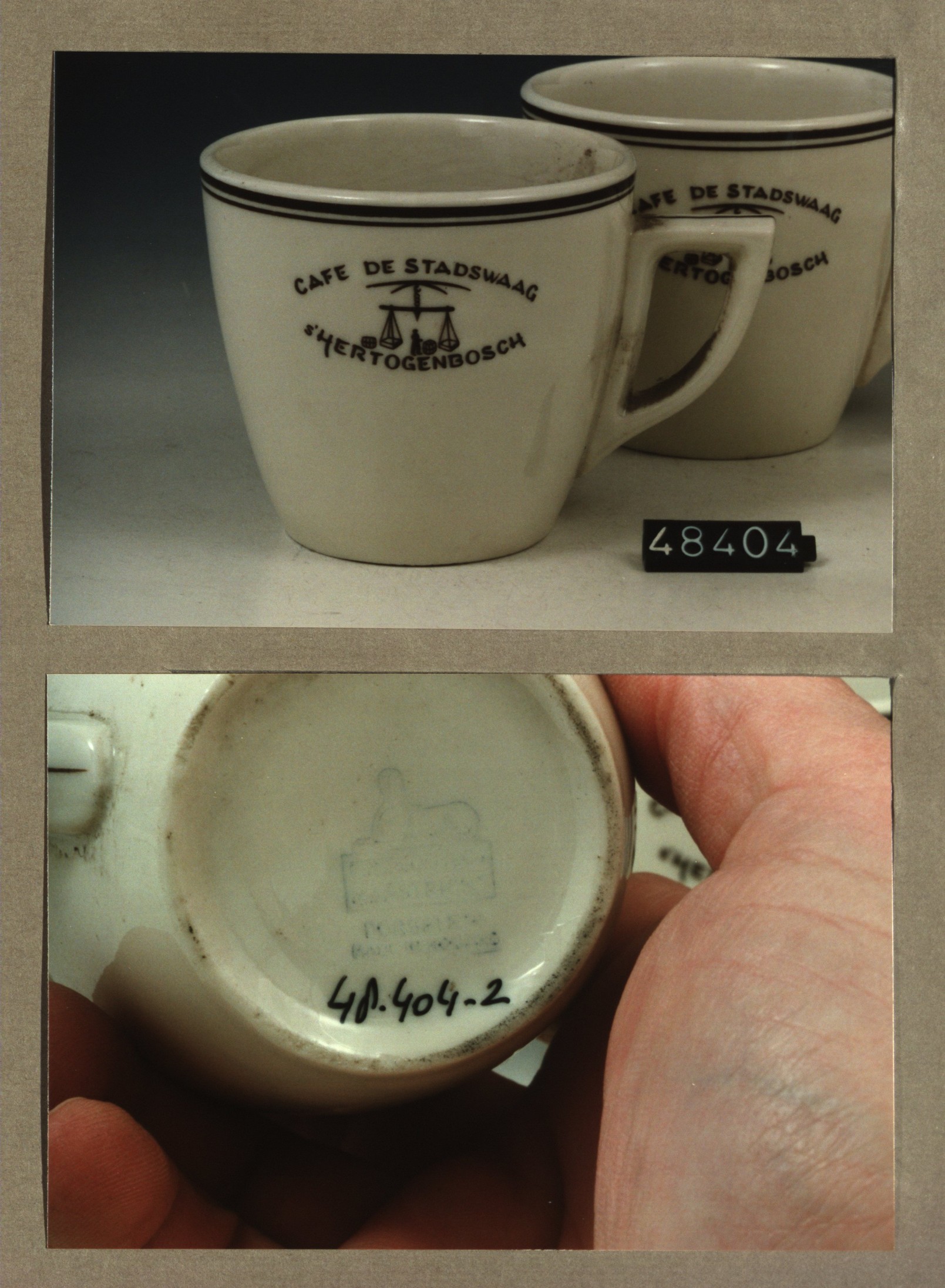Kop met opschrift, model P met decor Cafe de stadswa...