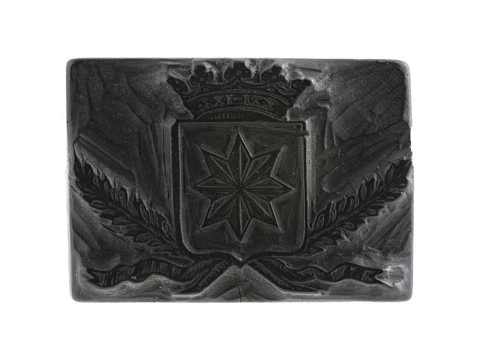 Houten cliché voor het gekroonde wapen van Vlaarding...