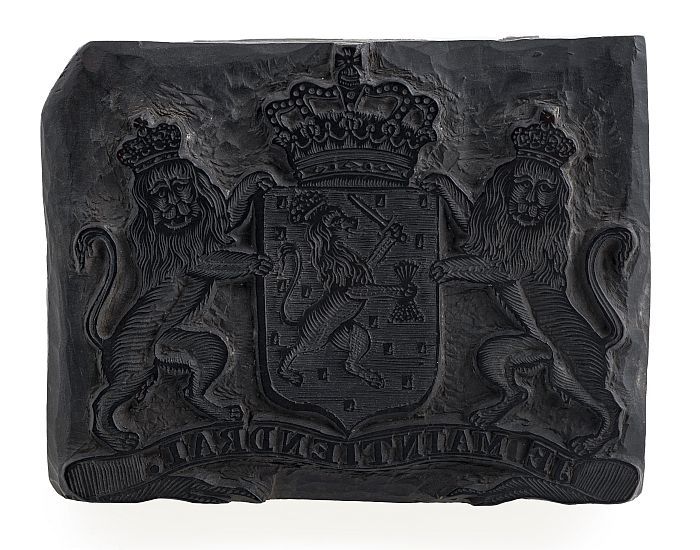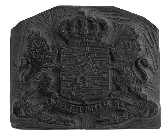 Houten cliché voor het wapen van het Koninkrijk der ...
