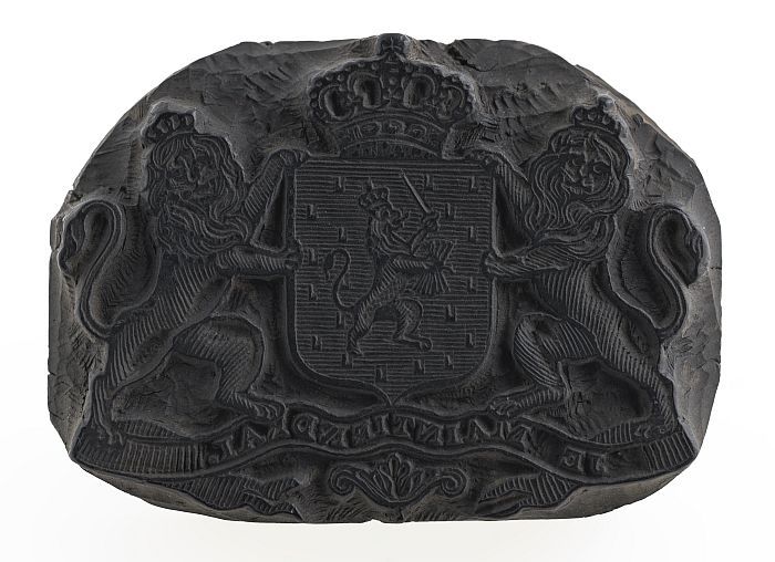 Houten cliché voor de gekroonde wapens van Holland e...