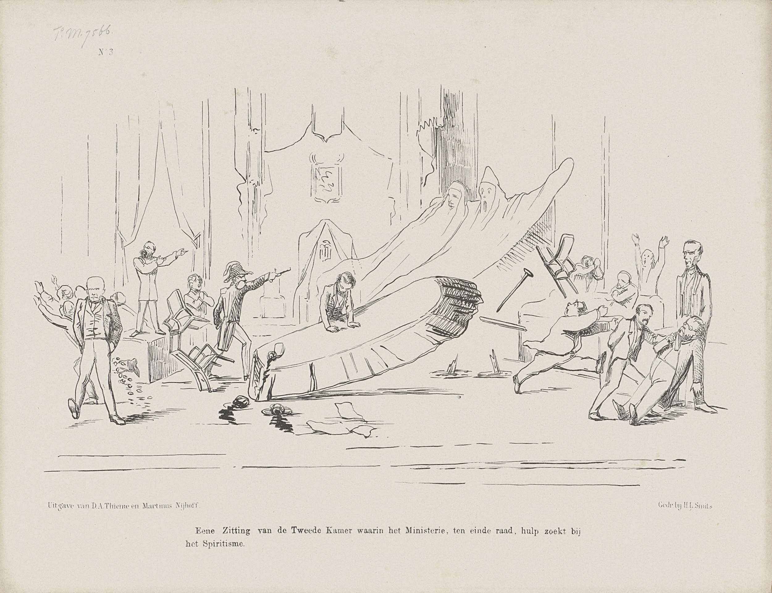 Spotprent met een dansende tafel in de Tweede Kamer,...