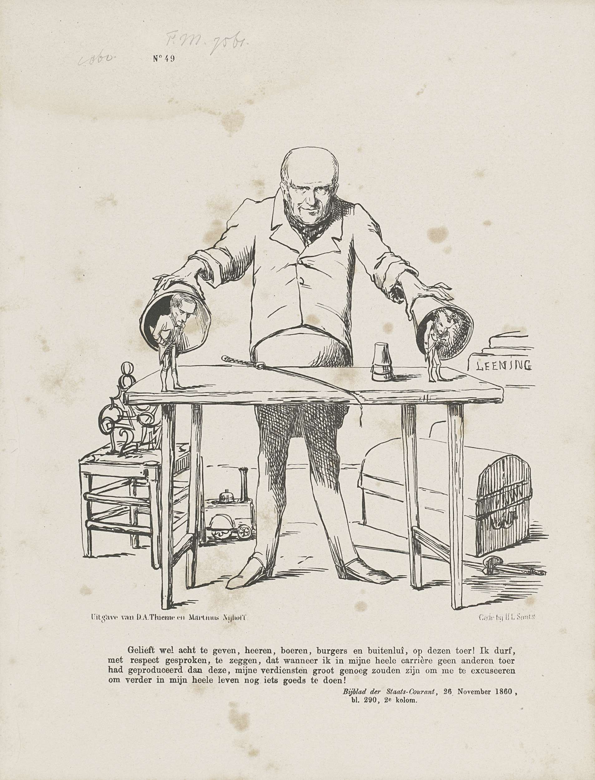 Spotprent op minister F.A. van Hall, 1860