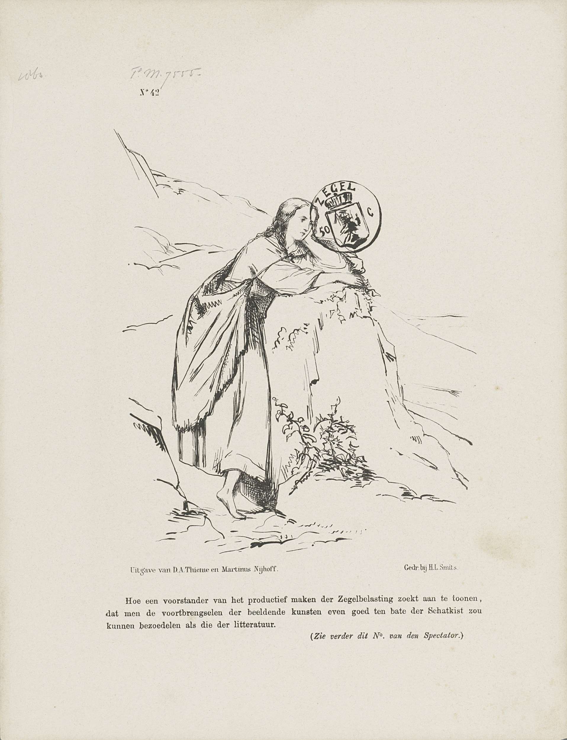 Spotprent op het zegel op de dagbladen, 1860