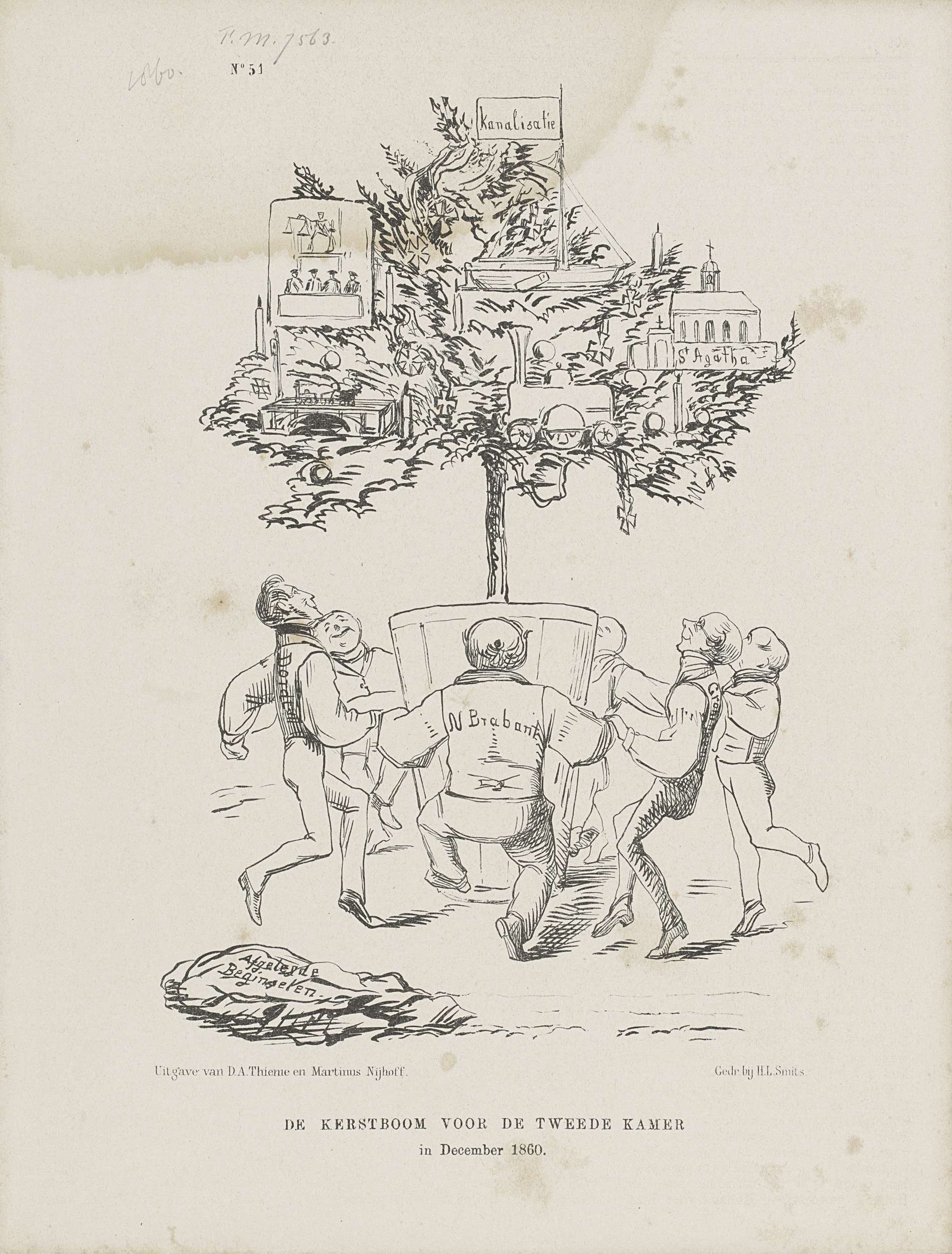 Spotprent op de kerstboom voor de Tweede Kamer, 1860