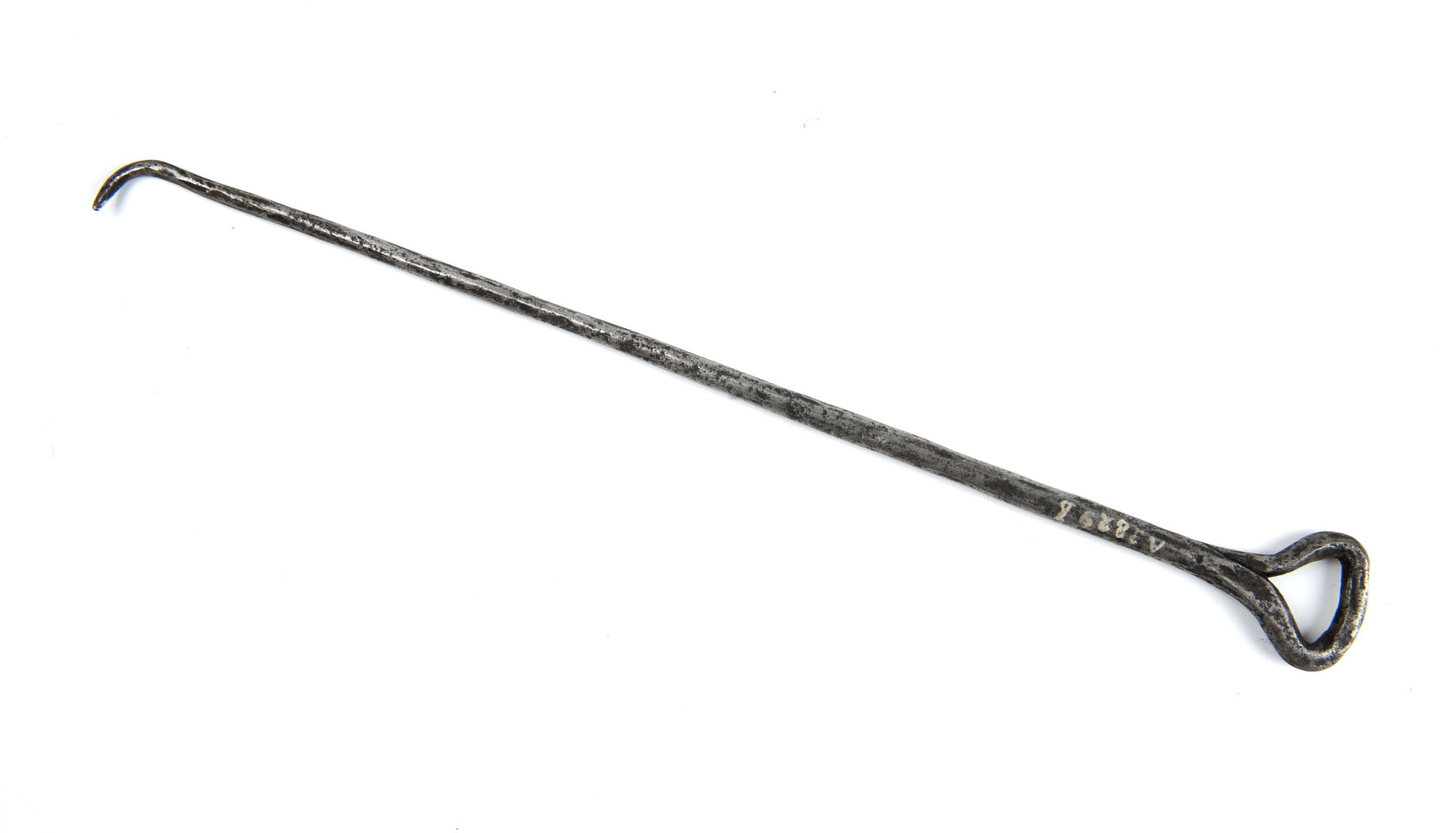 IJzeren vuurpook met een haak, gebruikt door een smid