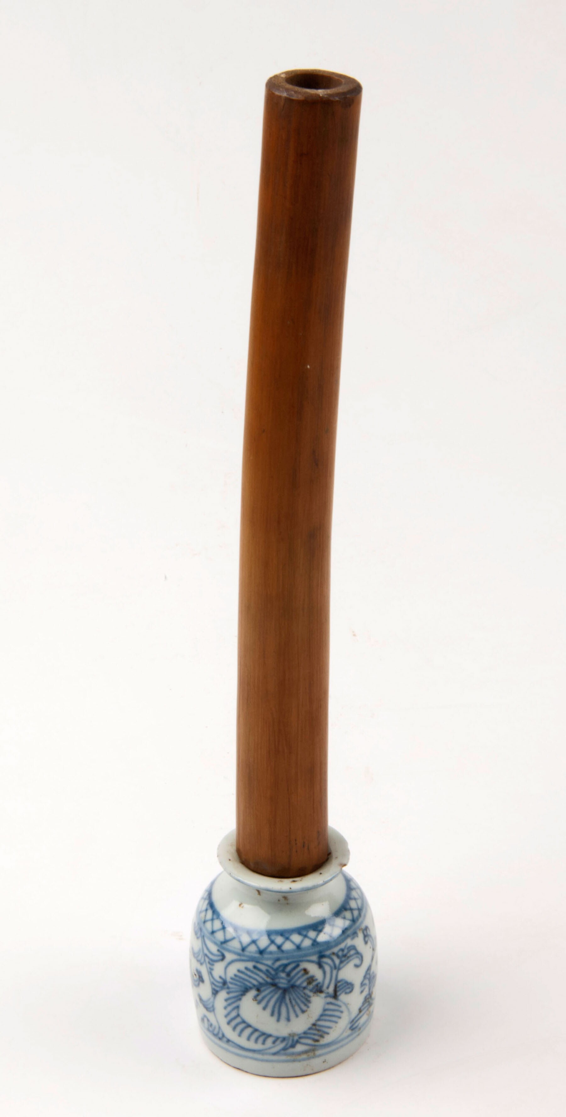 Opiumpijp met een blauw geglazuurde pijpenkop