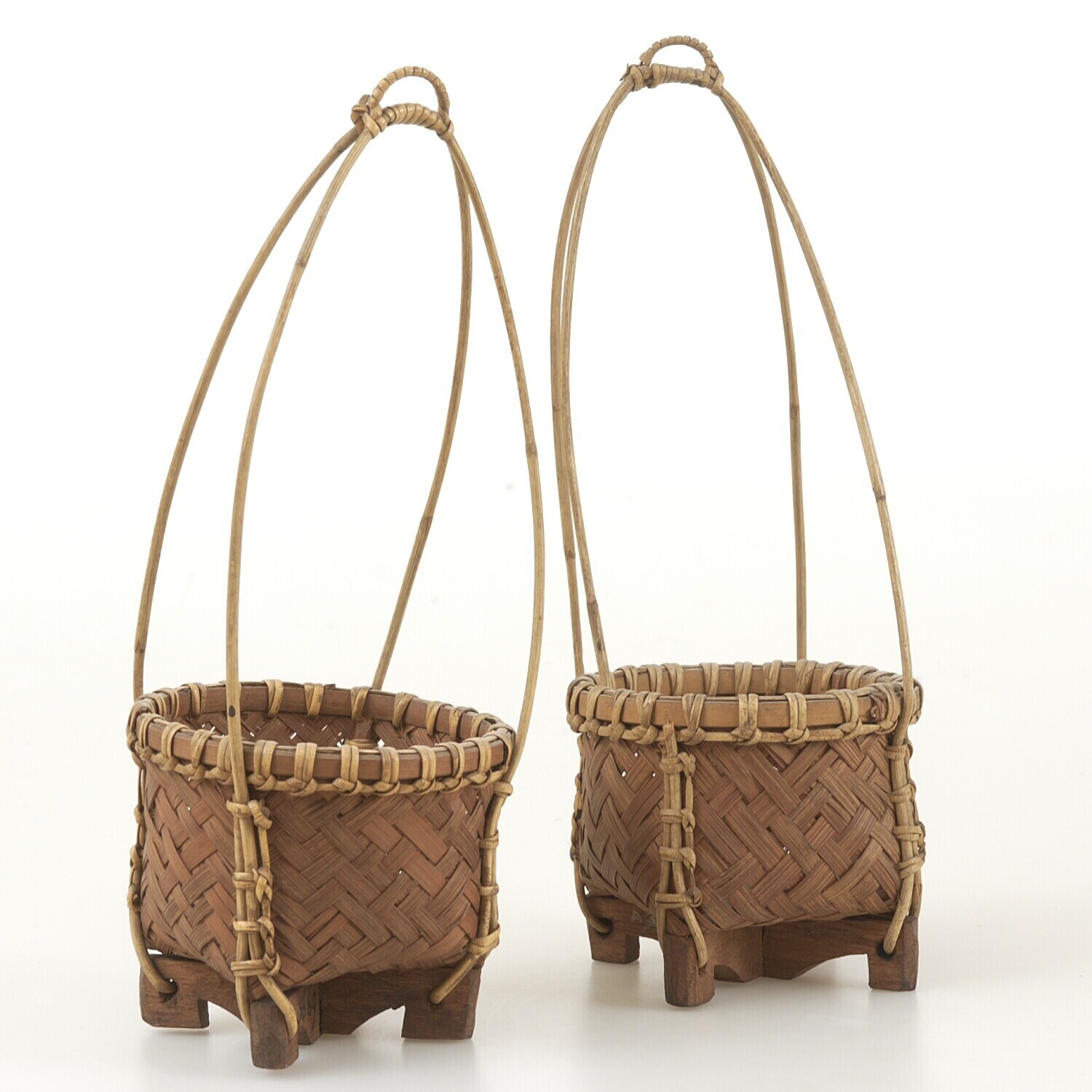 Twee gevlochten draagmanden van rotan