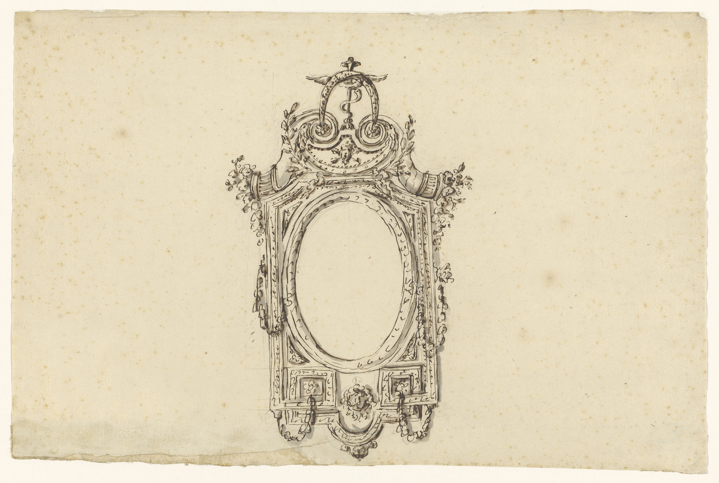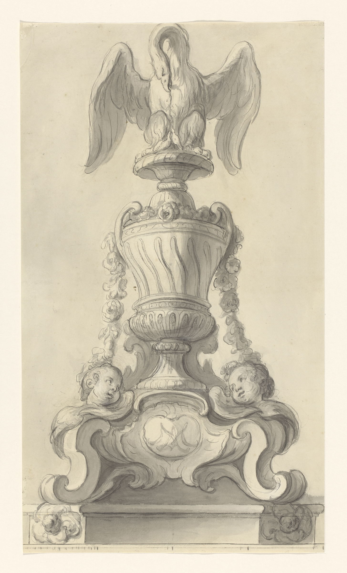 Ontwerp voor een schrijfdoos, voor- en bovenaanzicht...
